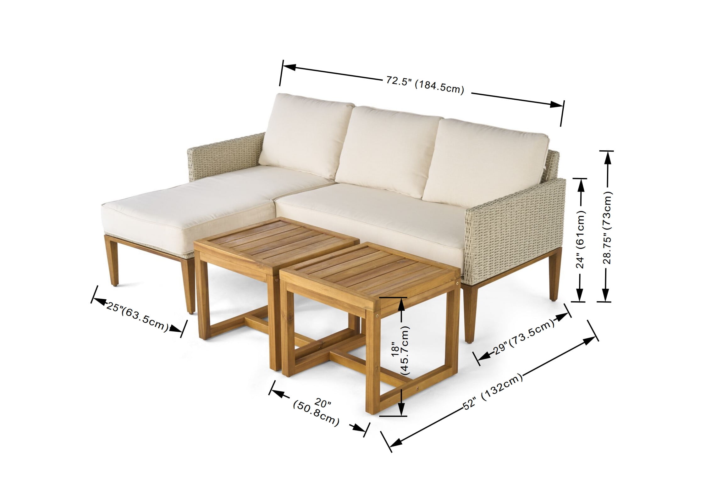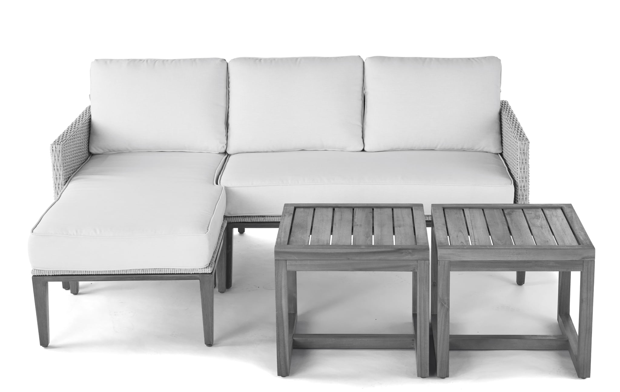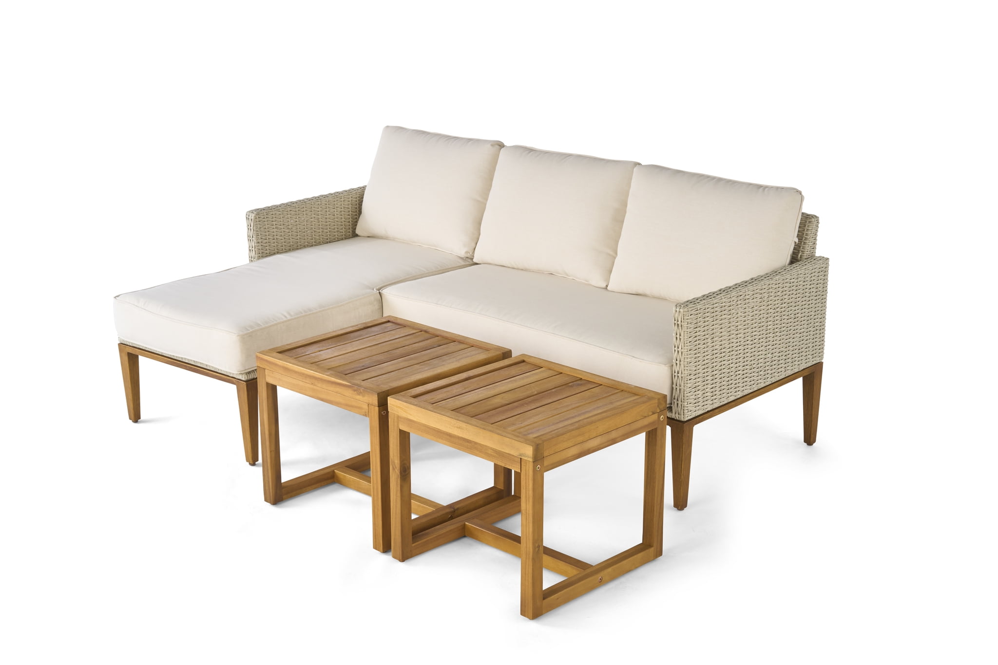 Better Homes & Gardens Davenport Sofa Lounger with Two Acacia Wood Table with Cushions – White