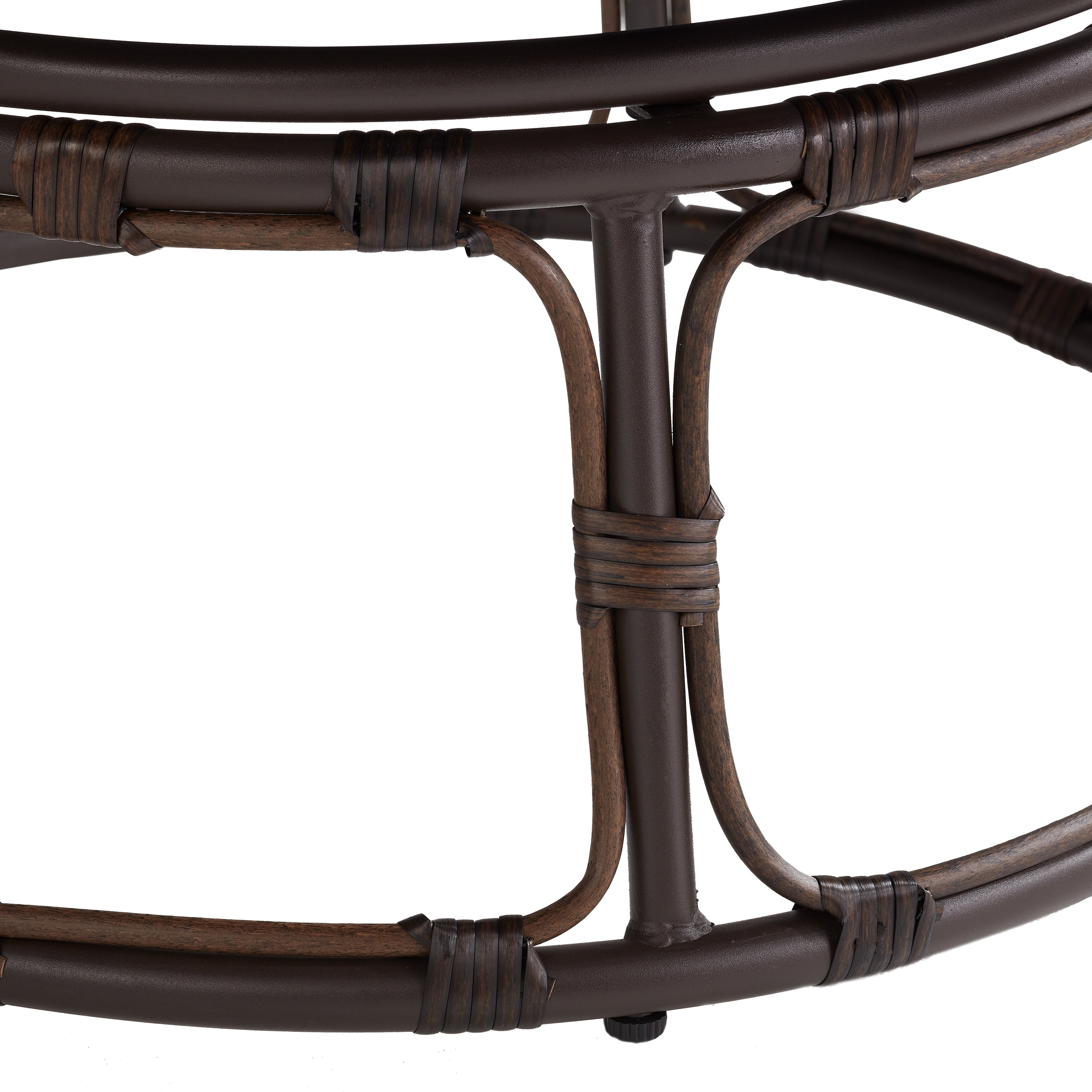 Add a touch of comfort to your home with the Better Homes & Gardens Papasan bench with a navy blue cushion. Designed with a sturdy steel frame and faux wicker accents, this classic bench features a soft 4.5″ thick tufted seat cushion covered in rich velvet-look upholstery to create an inviting seating option for two adults. The Better Homes & Gardens Papasan bench with cushion has a chair bowl that securely attaches to the base for comfort and stability. This Papasan bench’s cushion cover is made from 100% polyester that is hand-wash only with non-chlorine bleach when needed. Lay flat to dry. Cool iron if necessary. Do not dry clean.