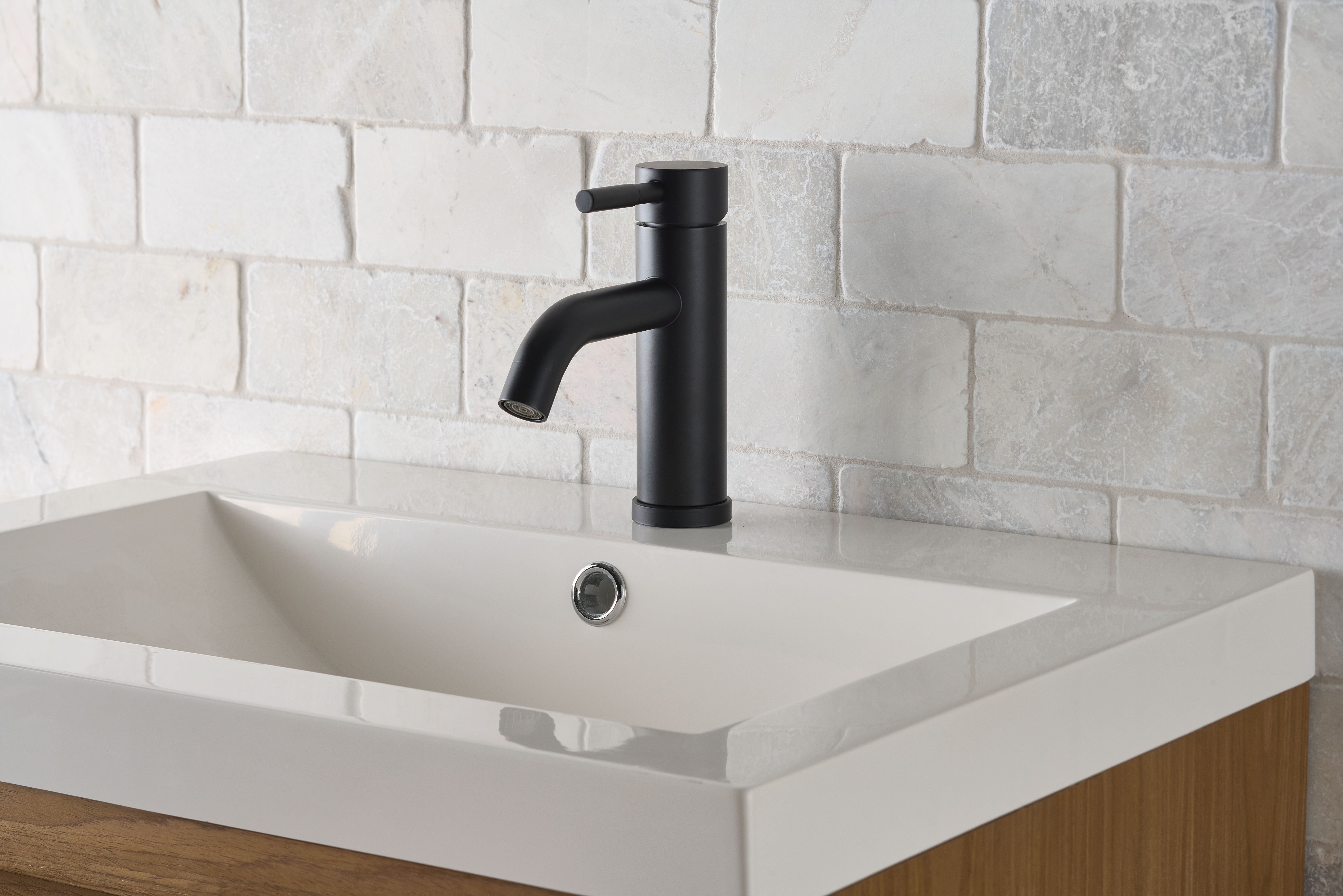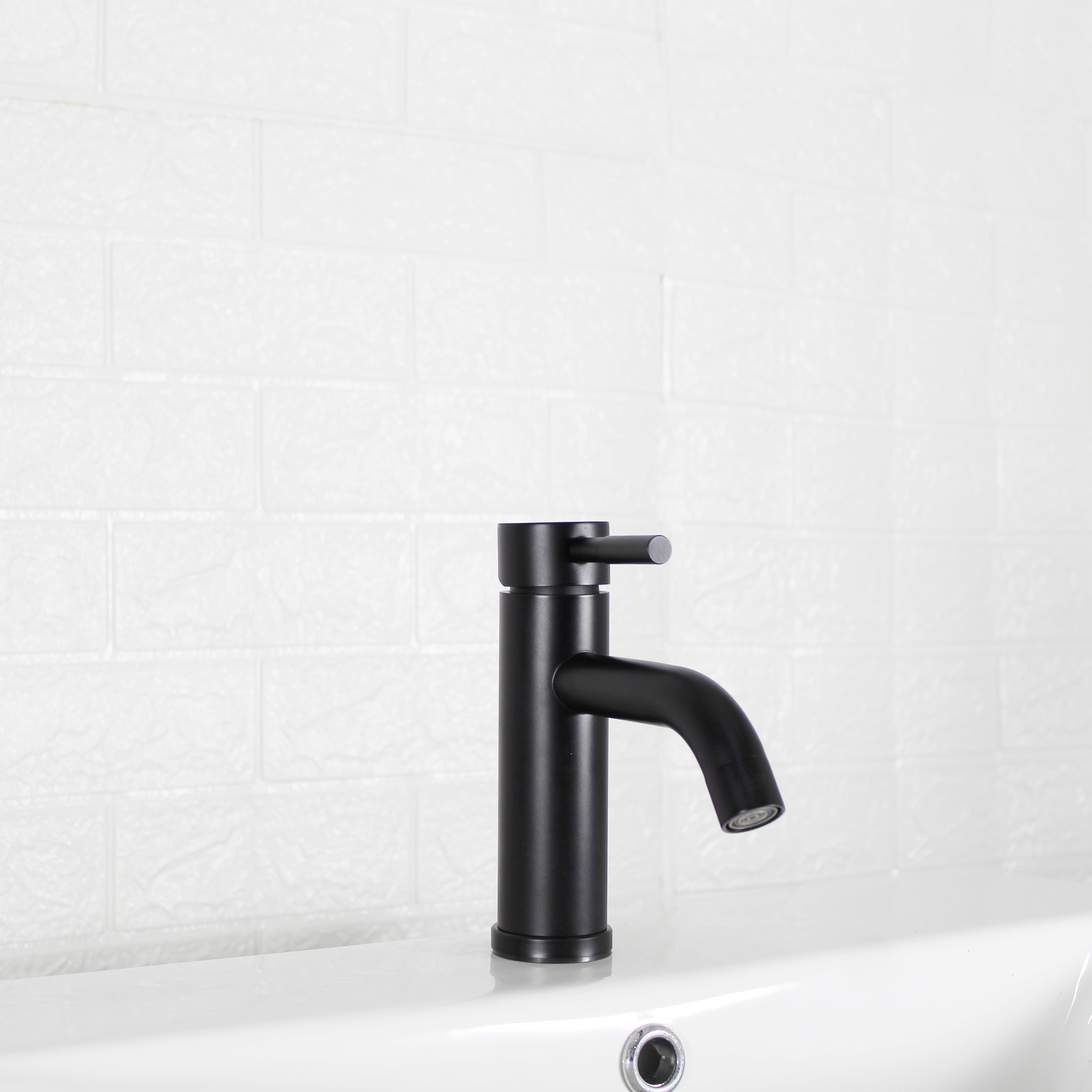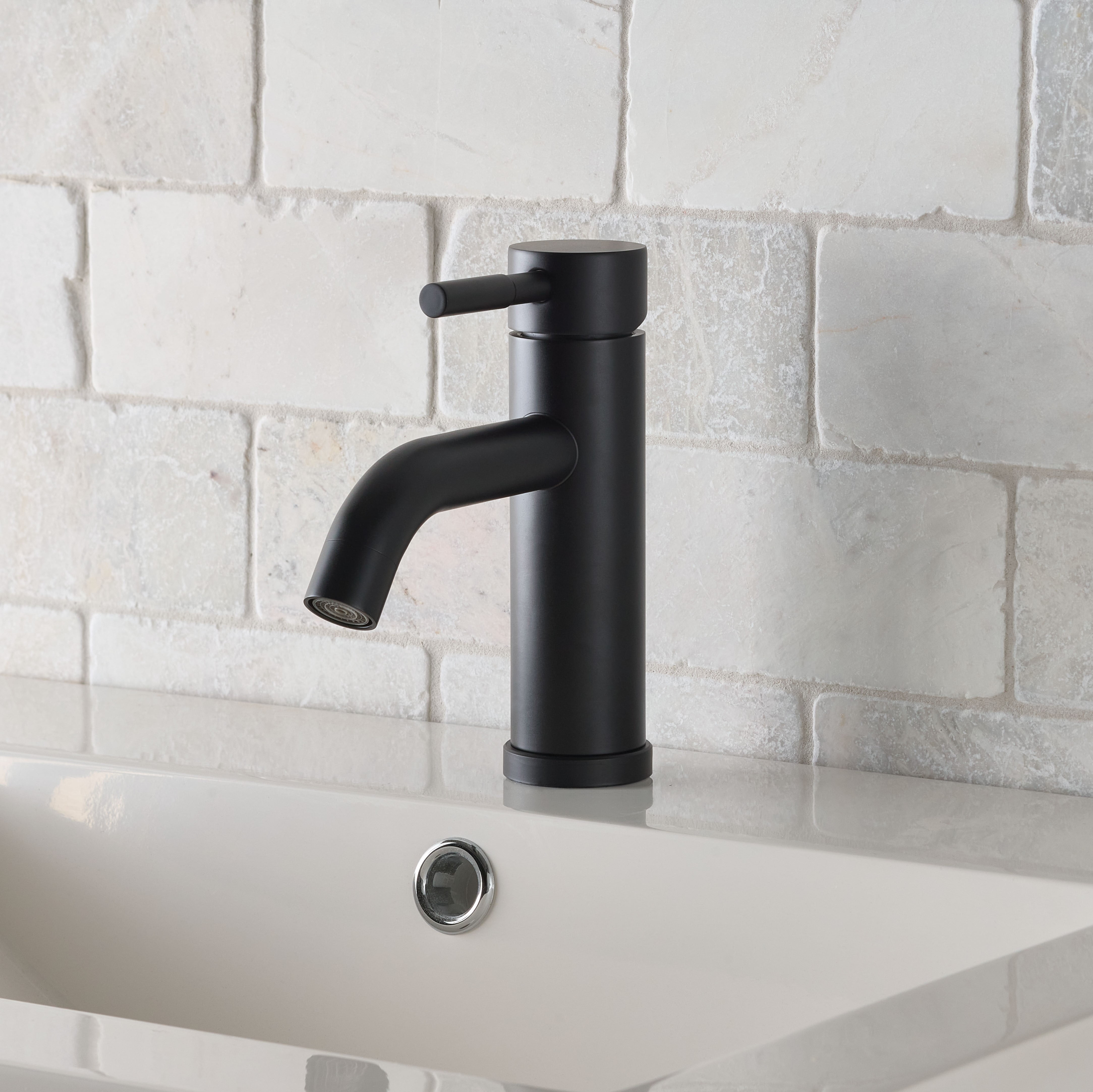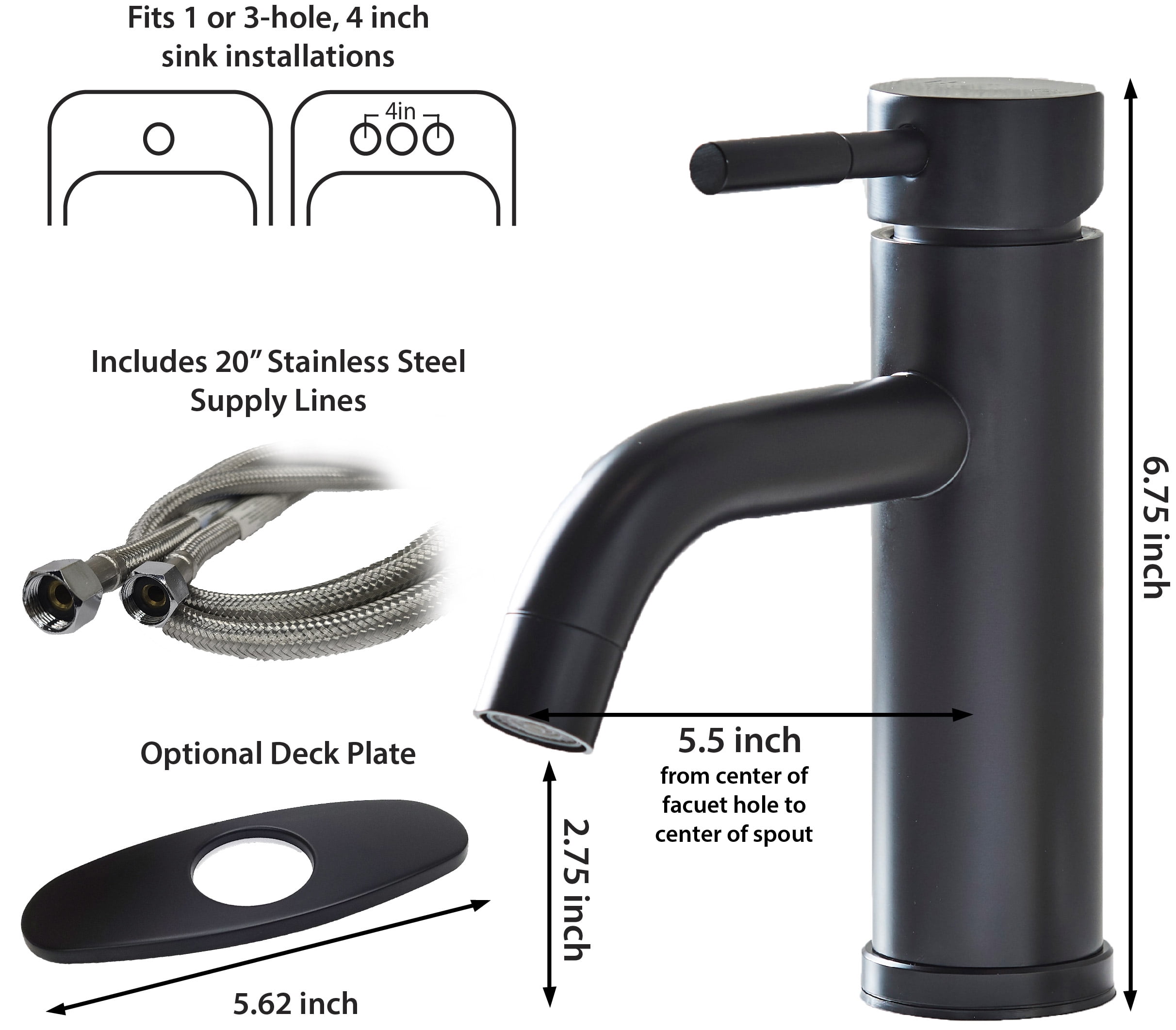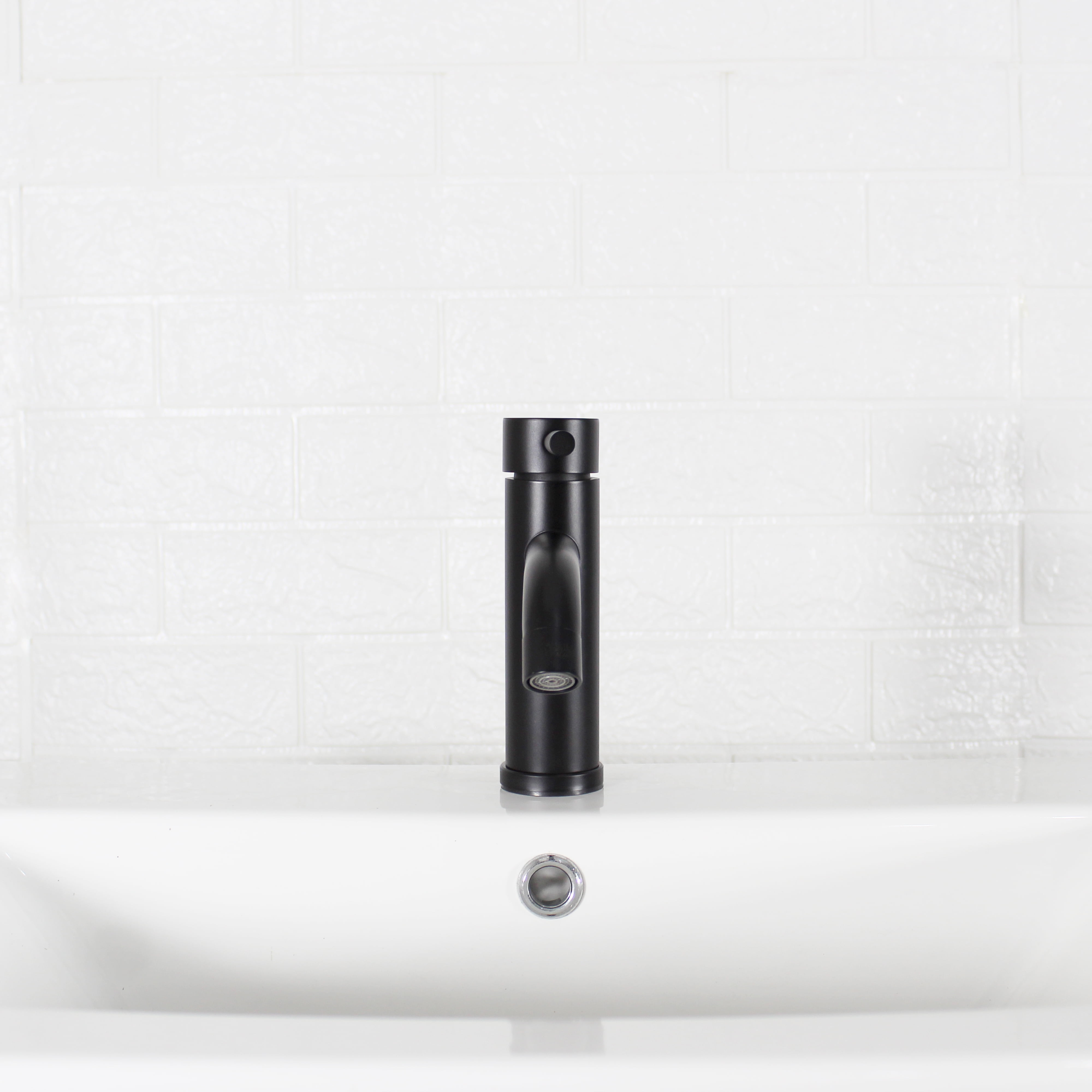 This Better Homes & Gardens Elmont Single Handle Bathroom Faucet in Matte Black finish is a stylish addition to your bathroom. The included optional deck plate allows for installation in 1 hole or 3 hole sink configurations with the optional deck plate. This single handle design allows for easy one hand operation of flow control and temperature. The included Push Pop-up in matching finish allows for easy installation and clean lines as no lift rod assembly is required. This faucet is Watersense Certified and covered by a Limited Lifetime Warranty. Clean periodically, but avoid use of abrasives cleaners, steel wool, or harsh chemicals.