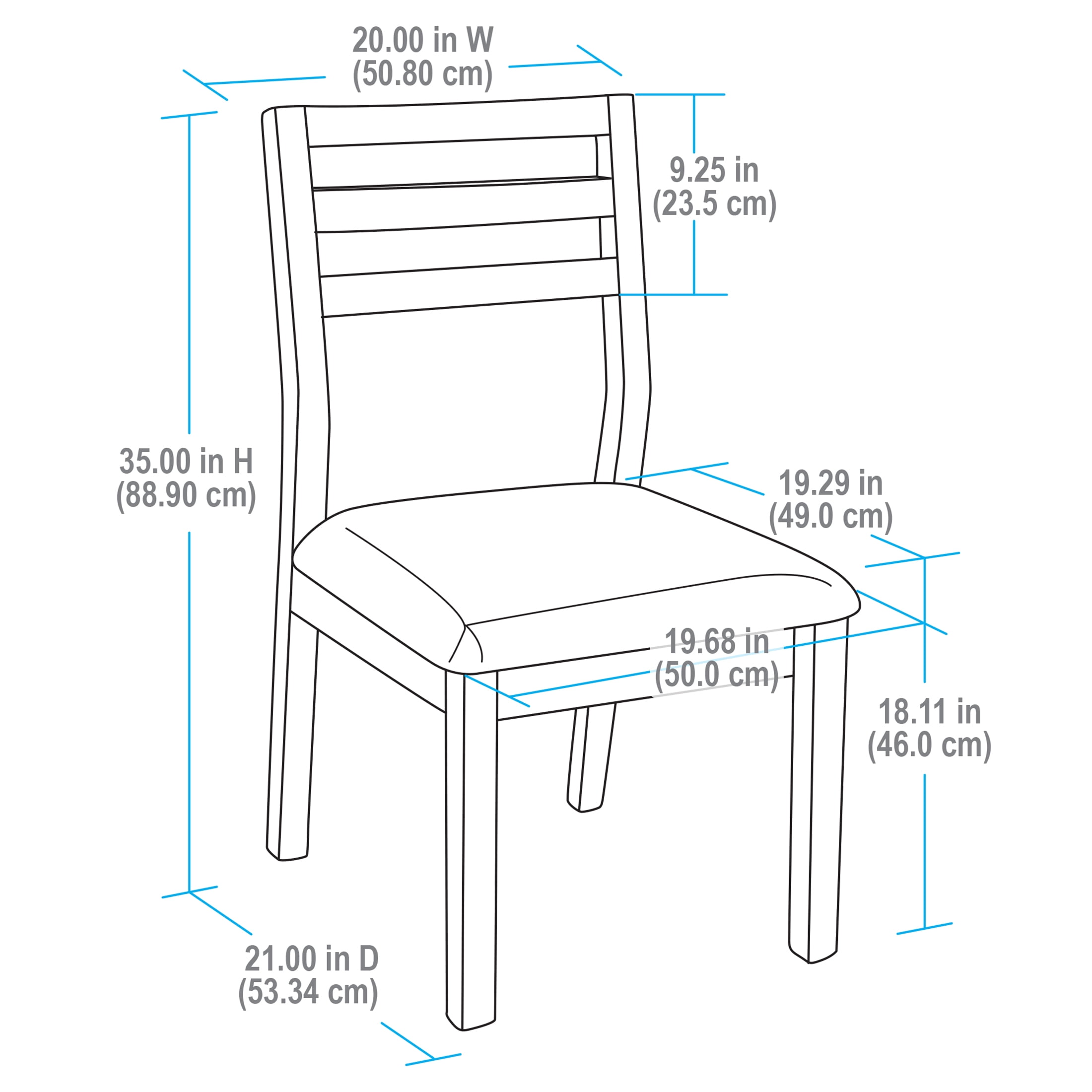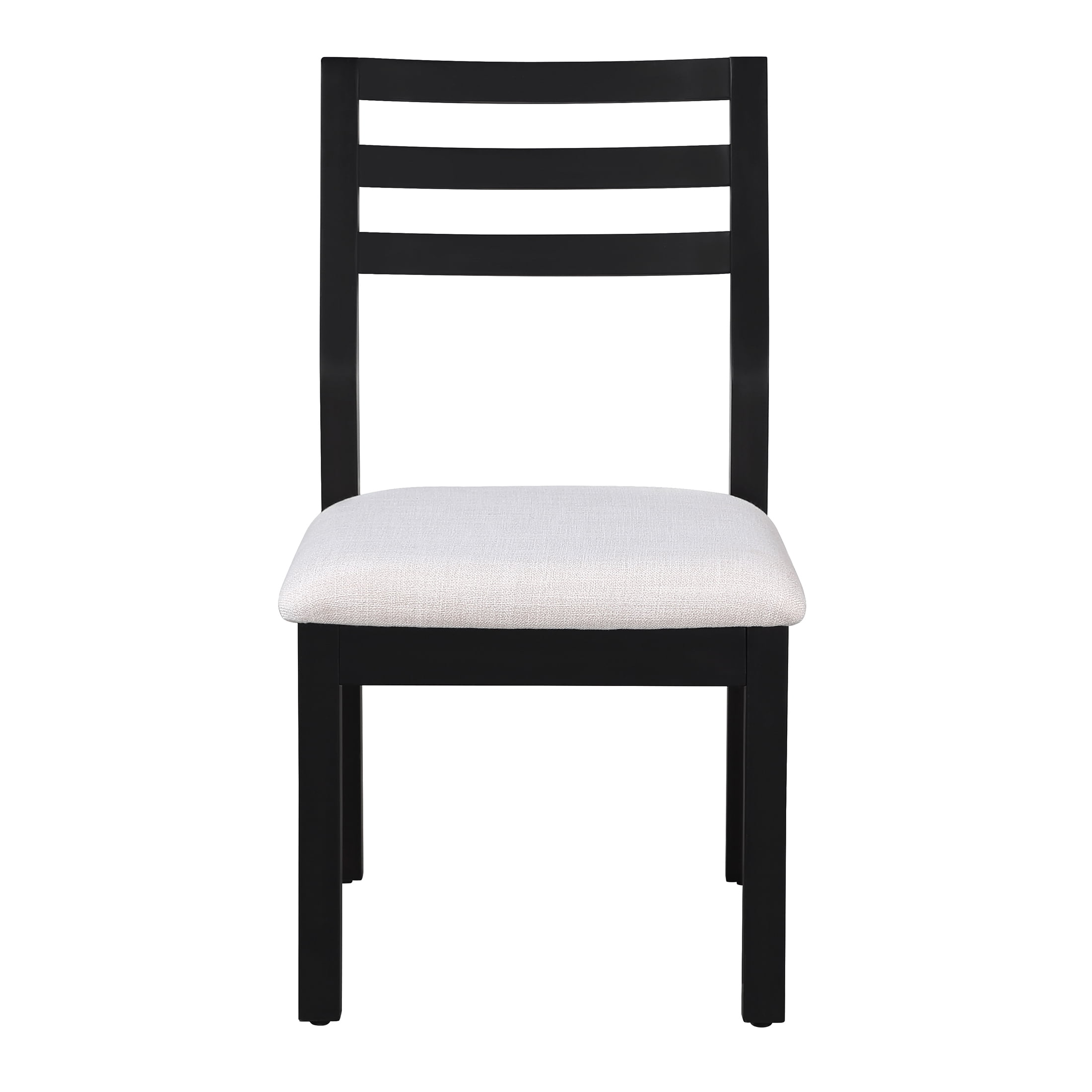 Better Homes & Gardens Ezra Dining Chairs 2 Pack Set included 2 Wood & Padded Chairs Black Finish Solidwood Frame, Backrest and Fabric Seat Pad Easy assembly makes for a quick and efficient construction process Chairs Dimensions: 20Wx21Dx35H inch (50.8×53.3×88.9cm) (approx) Offers space to serve up meals without taking up too much square footage Perfect for cozy meals or casual sitting Curve Ladder design Backrest for extra comfort and style Can be used in the Kitchen or dining room and could even be used as an study chair Model #BH2402125171017 (4894165028285) Black Matching BHG Ezra 72in Rect Dining Table: Matching BHG Ezra 45in Round Dining Table: