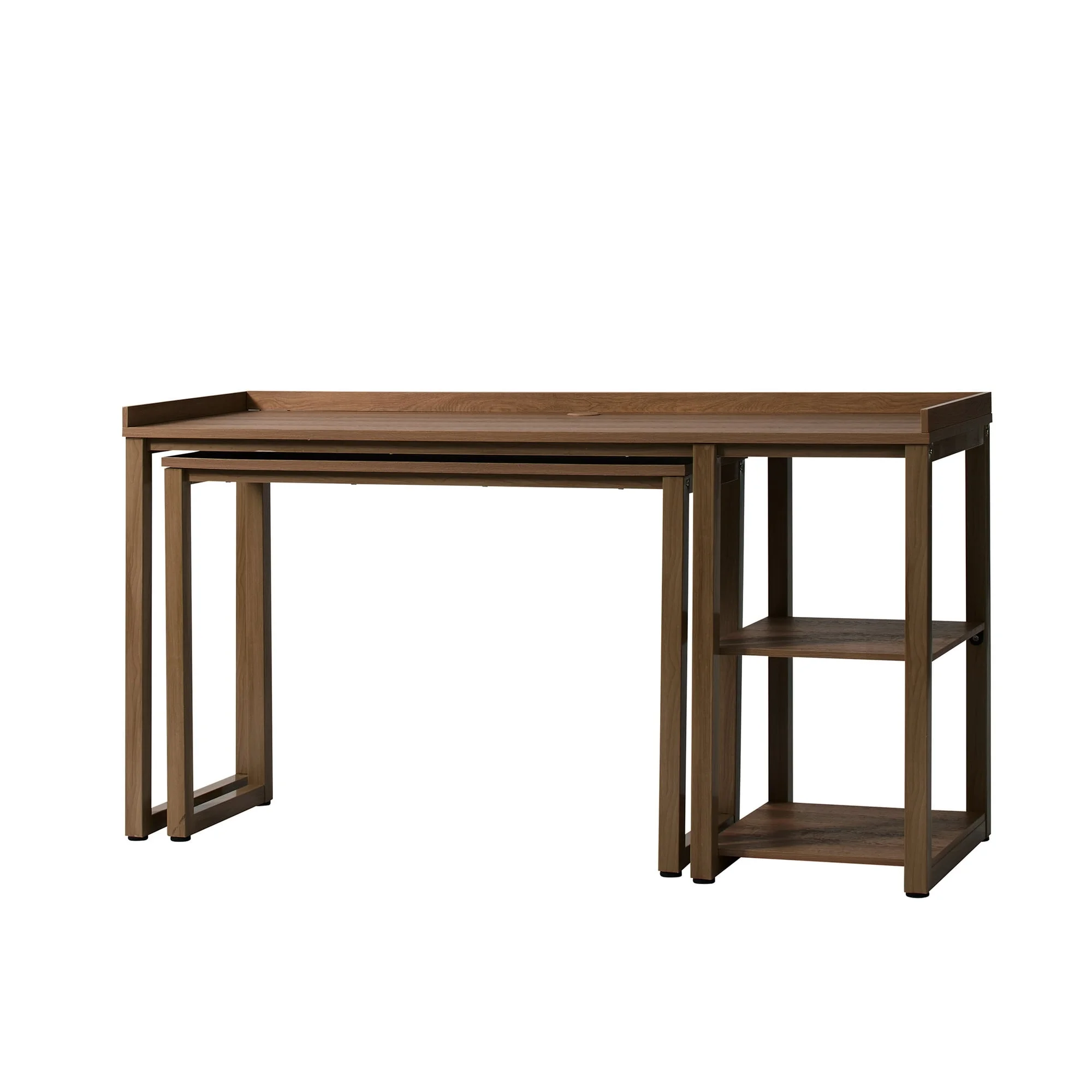 - Smaller desk can be stored neatly underneath larger desk to save space when needed