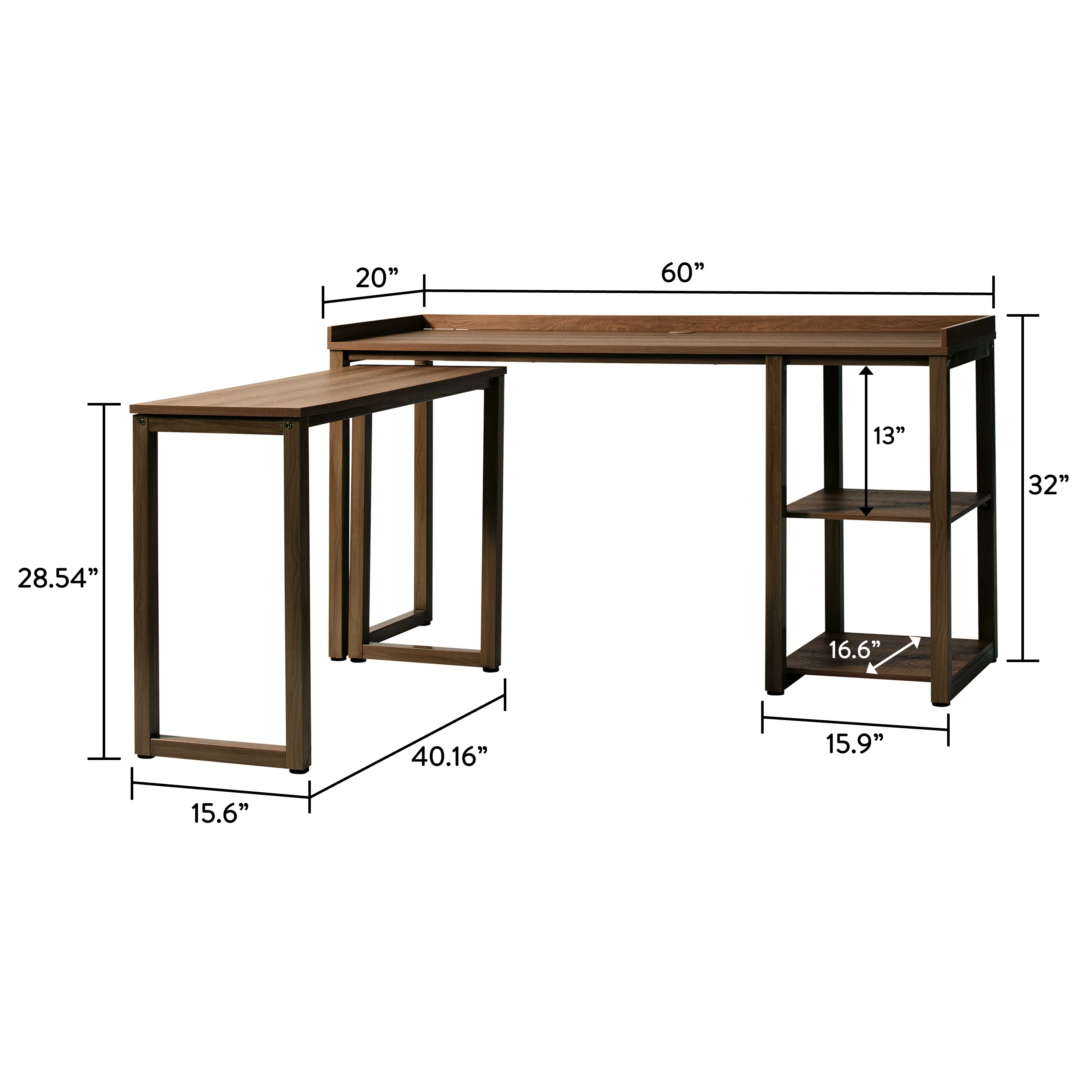 - Includes one 60″ desk and one 40″ desk with sturdy metal frames