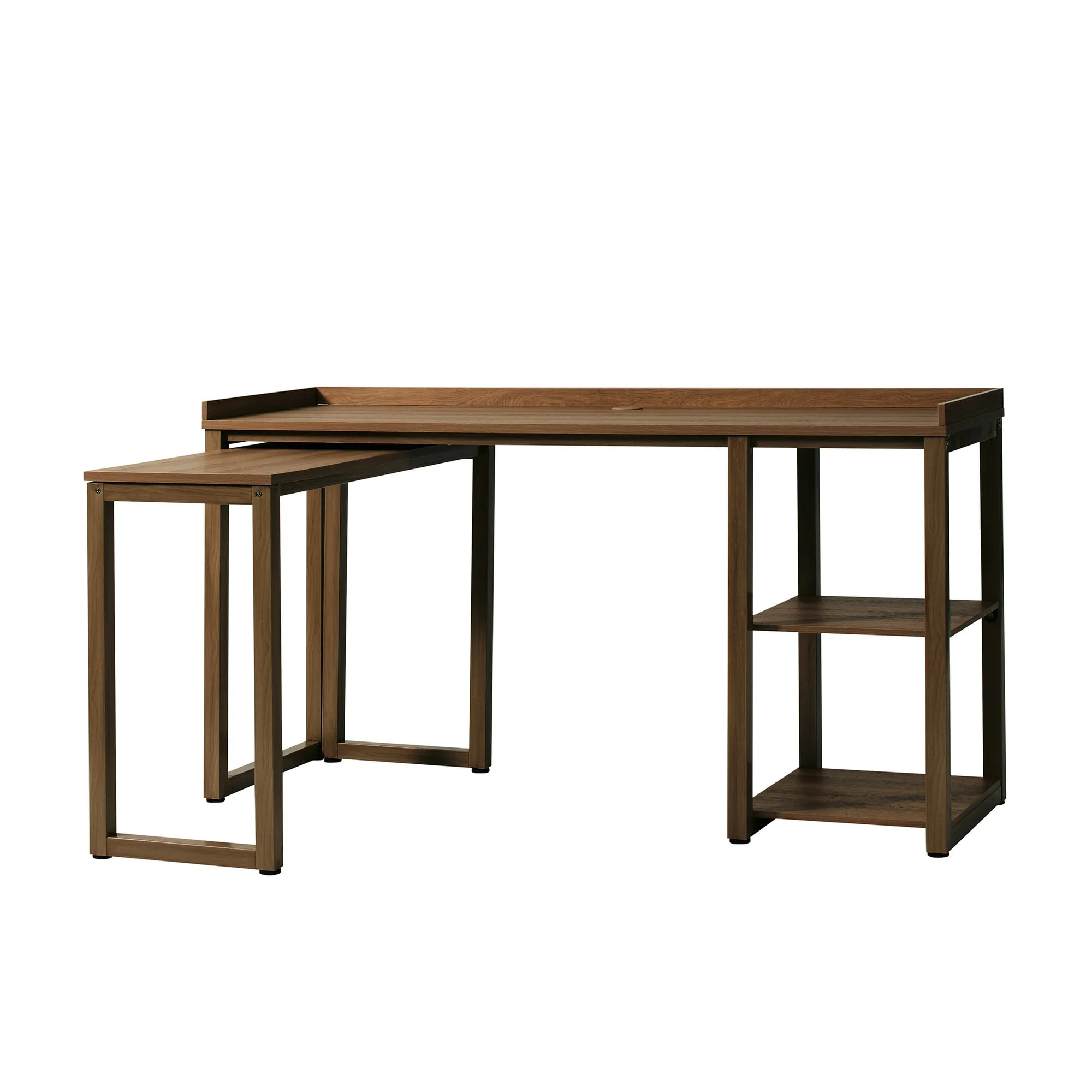 - Reversible design allows desk shelves to be built on the left or right side