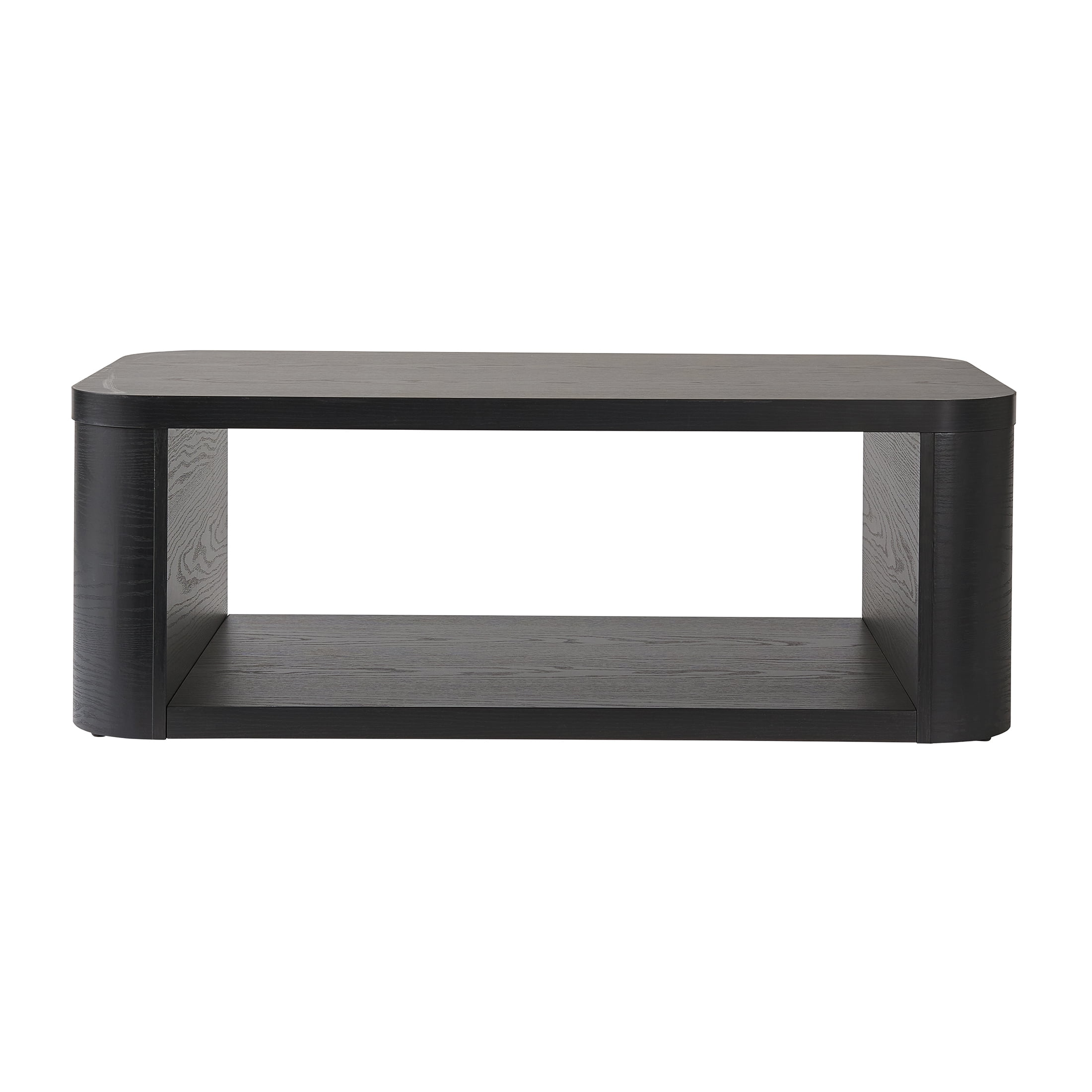 Infuse an elegant and sophisticated charm to your living room, lounge, study, or den with this finely crafted console table. Giving a stable and stylish home to hand curated collections, decorations, vases, lamps, and books, this piece represents a combination of a homespun theme and a modern design. The open back cube shaped frame gives an airy vibe while the Rich Black Finish engineered wood frame is perfectly embellished with aesthetically visible grain details. The coffee table is perfect for showcasing your decorative items or keeping all your magazines and remotes in one place.