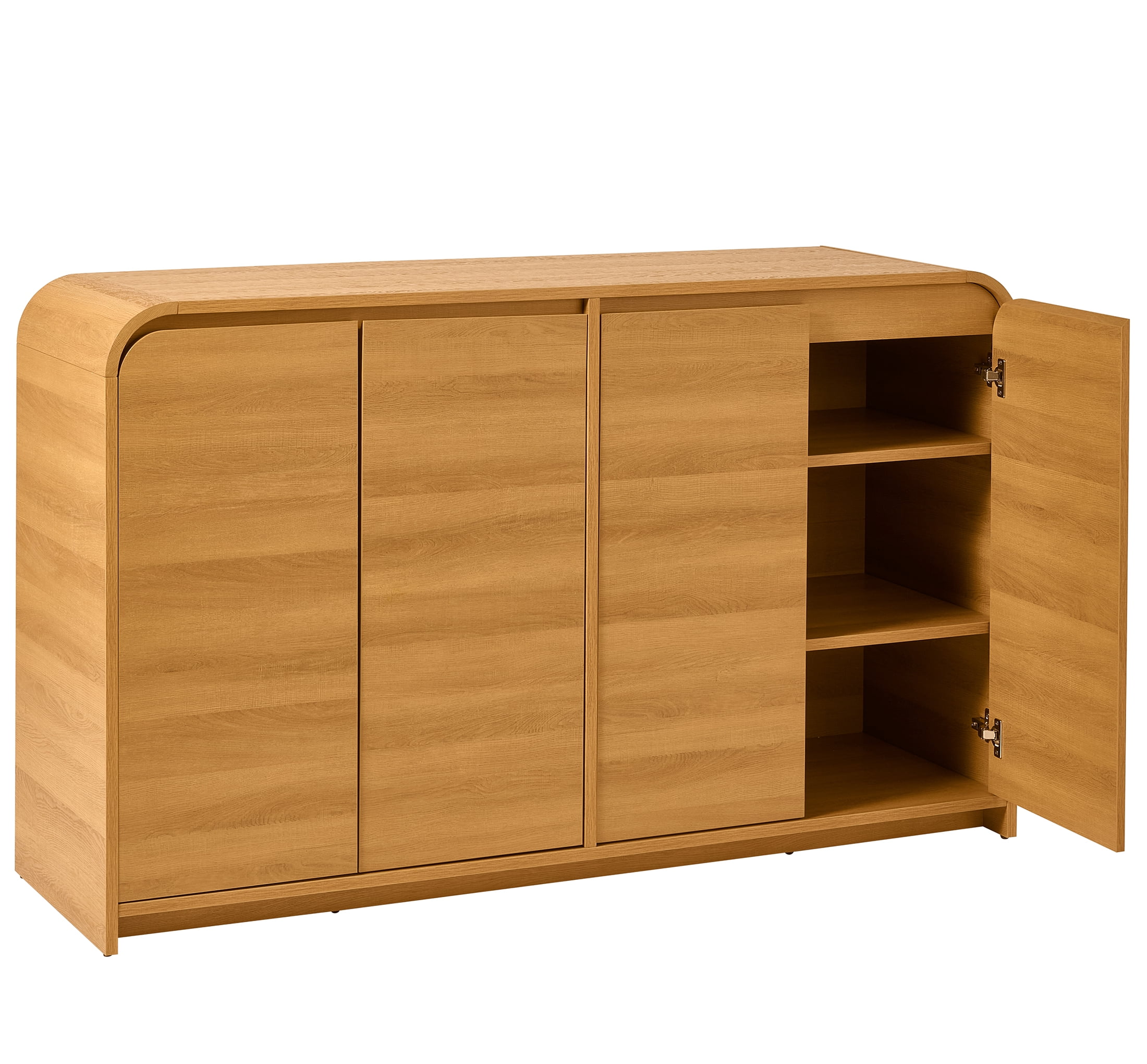 The BHG Arc Buffet offers versatile functionality, perfect for various spaces such as the dining room, bedroom, living room, or entryway. It can be used as a buffet, bar cabinet, media console, entryway cabinet, kitchen pantry storage, or even as a shoe cabinet. Its sleek design effortlessly blends with your home decor, making your space more beautiful and comfortable.