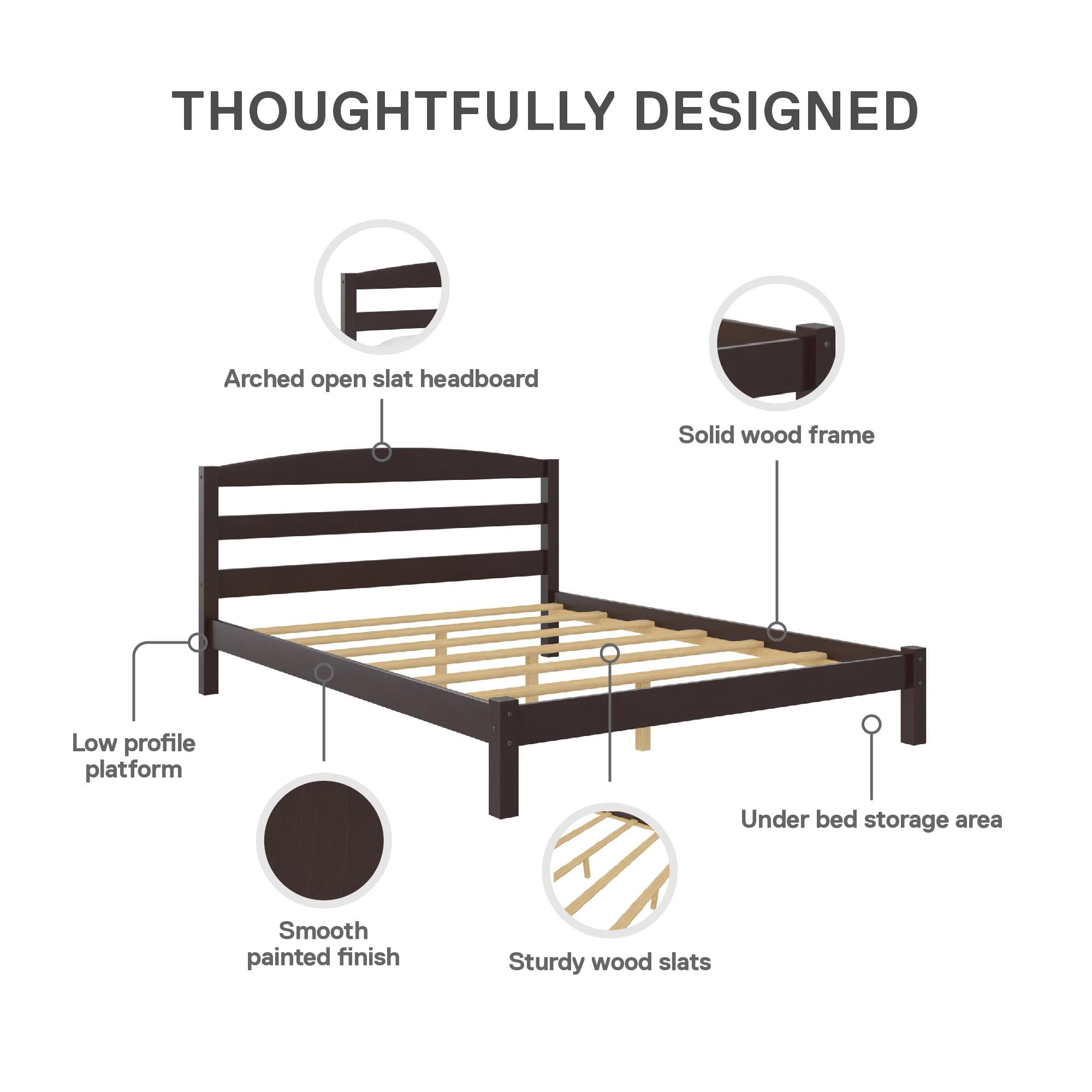 Better Homes & Gardens Leighton Solid Wood Platform Bed Frame, Full, Espresso