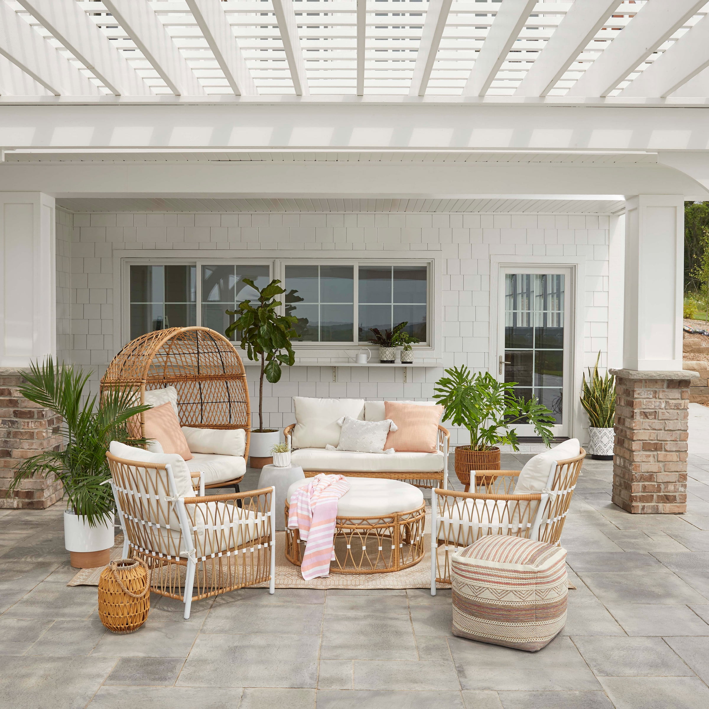 Ottoman Dimensions: 36″ x 36″ x 14.25″ Plush Solution-Dyed Polyester cushions provide weather-resistant comfort with Scotchgard 3M Removable cushion with table underneath Ottoman can be used as additional seating Heavy-duty, rust-resistant, e-coated & powder-coated steel frames Handwoven, all-weather resin wicker Assembly required. Instructions, hardware kit and tools included. Part of the Better Homes & Gardens Lilah Collection
