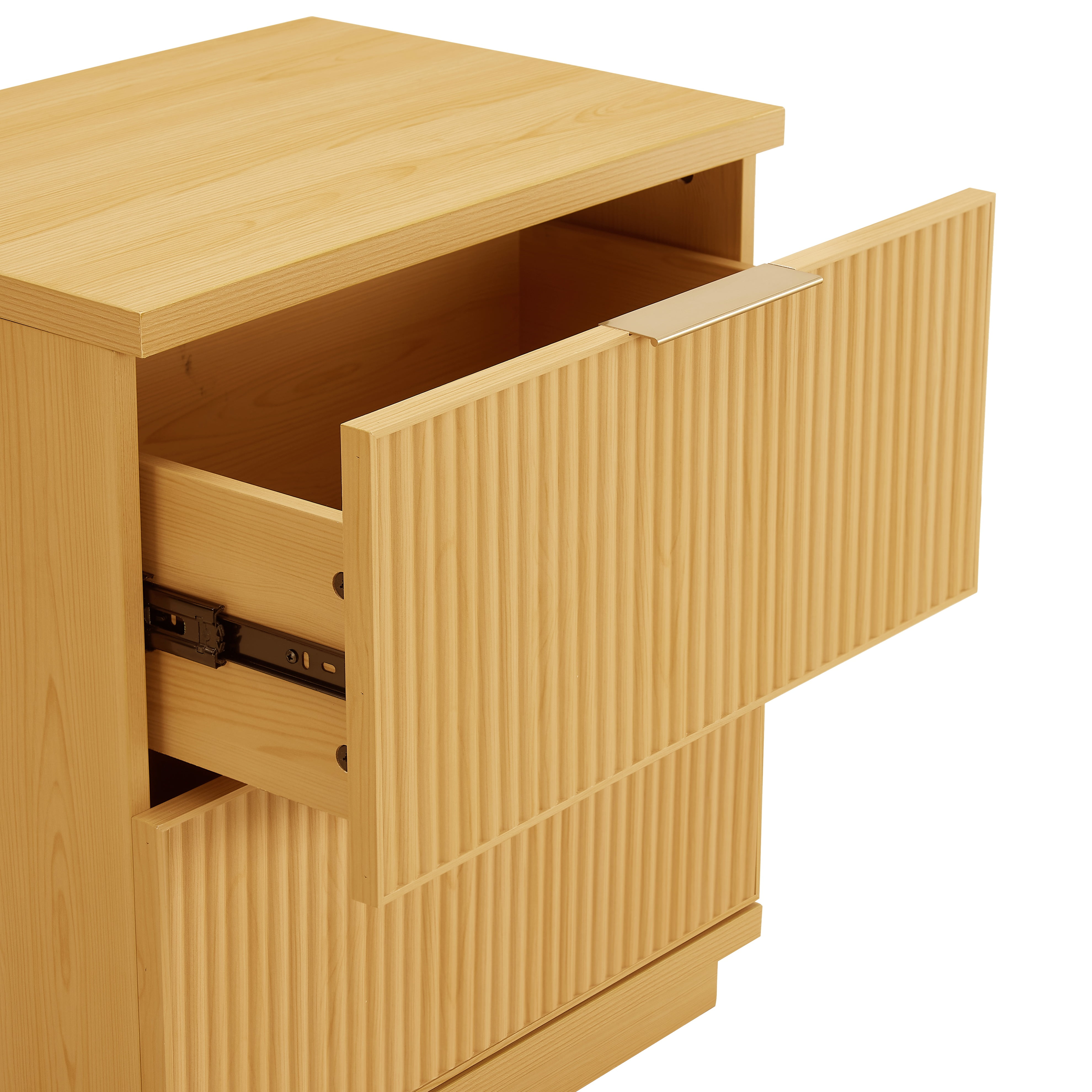 ✅ 2 Large Drawers 2 Large Drawers provide sufficient storage space for your books, cosmetics, accessories and other personal items. By storing all your items in one cabinet, you can keep your items clean and tidy, which is the perfect solution for small space storage. ✅ Quality Finish Materials The top surface of the Lillian Fluted Nightstand you mentioned is made from premium materials with a smooth, polished finish that will add elegance and sophistication to any room. ✅ Shiny gold-colored handles The drawer handle is both functional and aesthetically pleasing. Its elegant and stylish design with a slim, ergonomic shape is easy to grip and comfortable to use. ✅ Stable bottom base The stable bottom base ensuring high durability and strength to resist the wear and tear caused by daily use