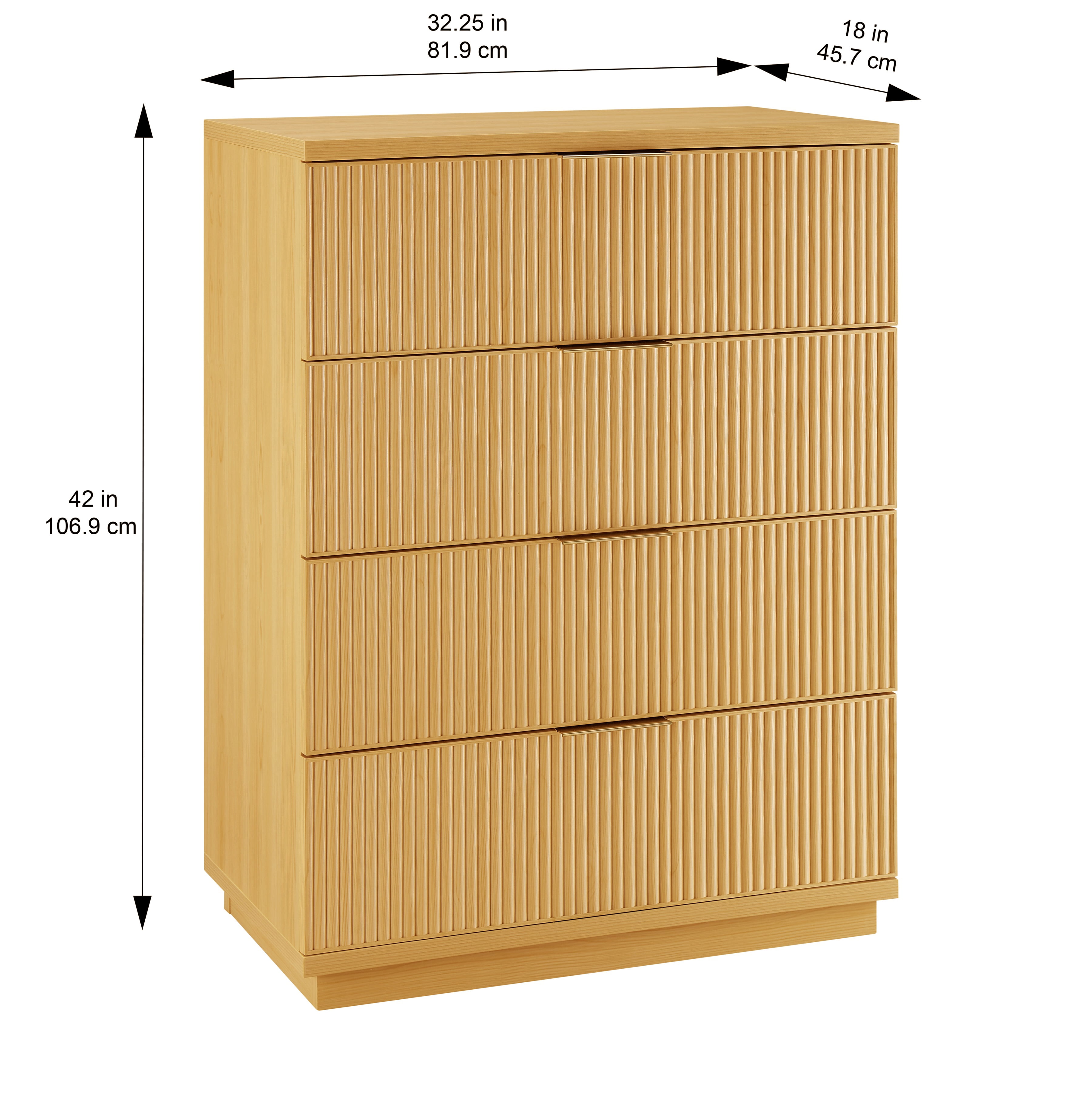 Better Homes & Gardens Lillian Fluted 4 Drawer Dresser, Natural Pine