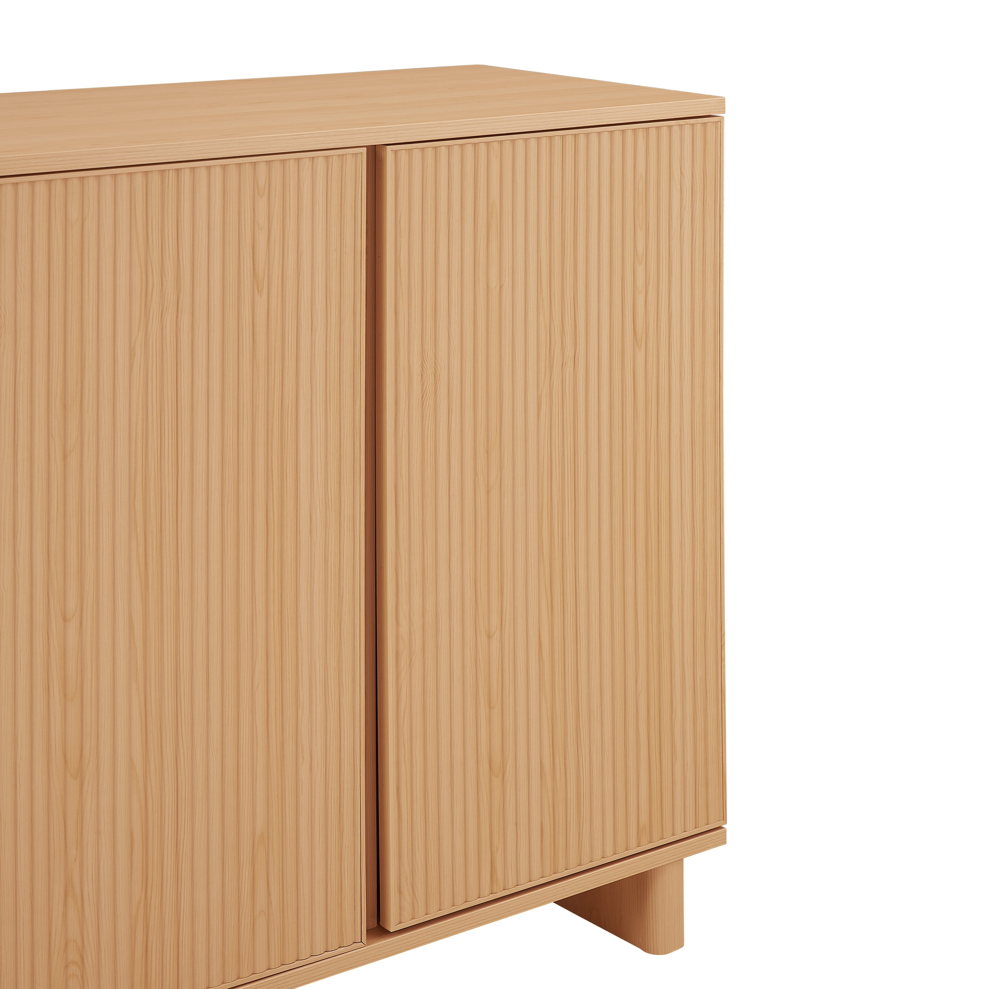 This Better Homes & Gardens Lillian Fluted bar cabinet has clean lines and a timeless design that will revitalize any space. Designed with slow-close hinges, it features adjustable shelves and wine storage. The top of the cabinet is perfect for serving drinks or displaying your favorite decor items. The flat surface ensures stability while pouring drinks, making it easy to entertain guests in style. This wine cabinet is not only functional but also durable. The sturdy construction ensures long-lasting use.The top surface can hold 50 lbs,each shelf can hold 30 lbs. Behind the 2 doors are 4 shelves for plenty of storage for your wine and liquor collection, stemware, and party supplies so you have everything you need to entertain family and friends, A wall anti tip kit is included to secure the beverage cabinet to the wall and prevent tipping injuries The bar cabinet ships flat to your door and 2 adults are recommended to assemble.