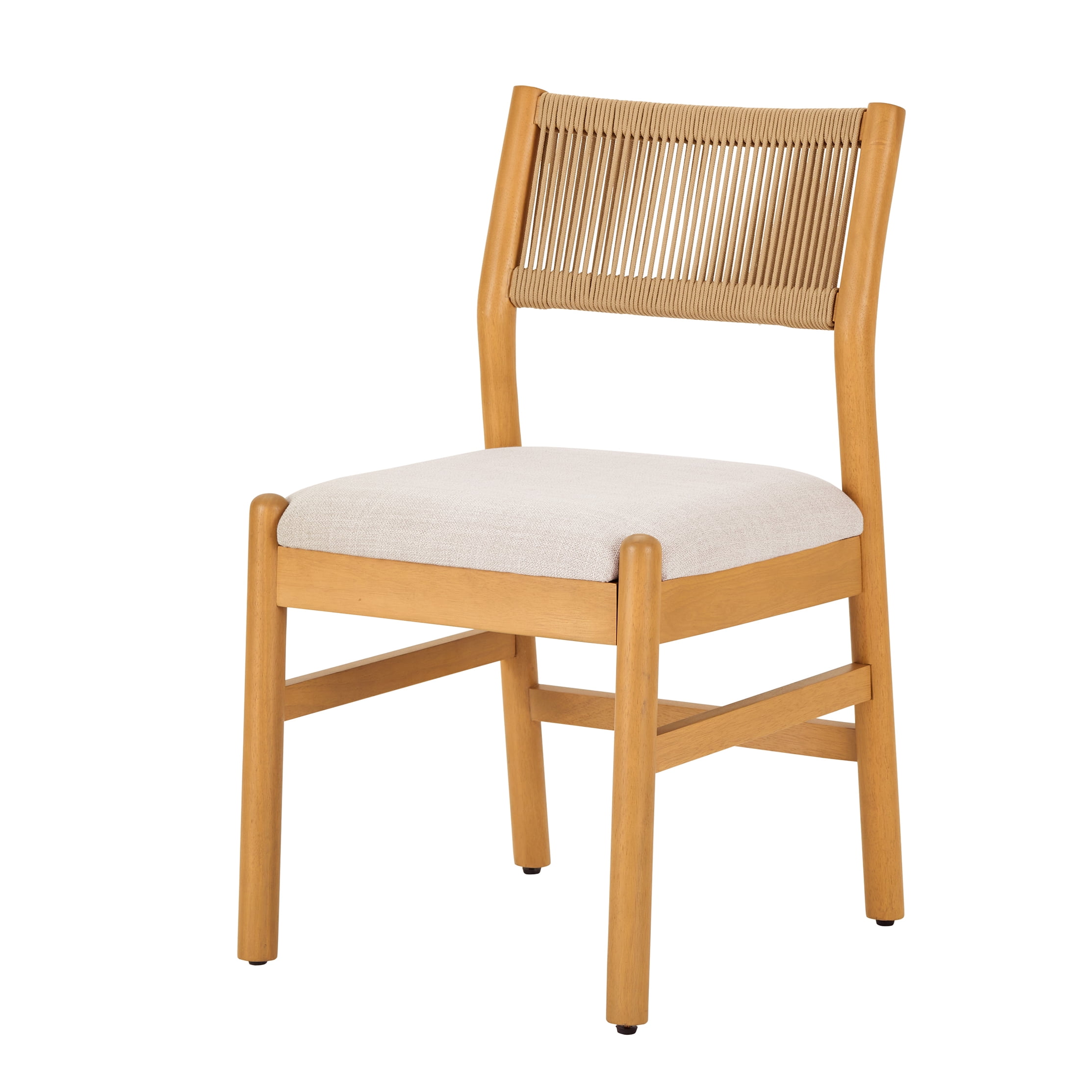Better Homes & Gardens Lillian Rope Dining Chairs 2 Pack Set included 2 Wood & Padded Chairs Pine Finish Solidwood Frame, Rope Weaving Back and Cream Fabric Seat Pad Easy assembly makes for a quick and efficient construction process Chairs Dimensions: 18.5Wx21Dx32.65H inch (47×53.3x83cm) (approx) Offers space to serve up meals without taking up too much square footage Perfect for cozy meals or casual sitting Curve Backrest with Rope Hand Weaving for extra comfort and style Can be used in the Kitchen or dining room and could even be used as an study chair Solid Rubberwood Frame with Fabric seat pad and backrest Model #BH2402125171011 (4894165028247) Cream Shop our BHG Ezra Collecting: Shop our BHG Luliet Dining Chair: Shop our BHG Reading Tall Dining Chair
