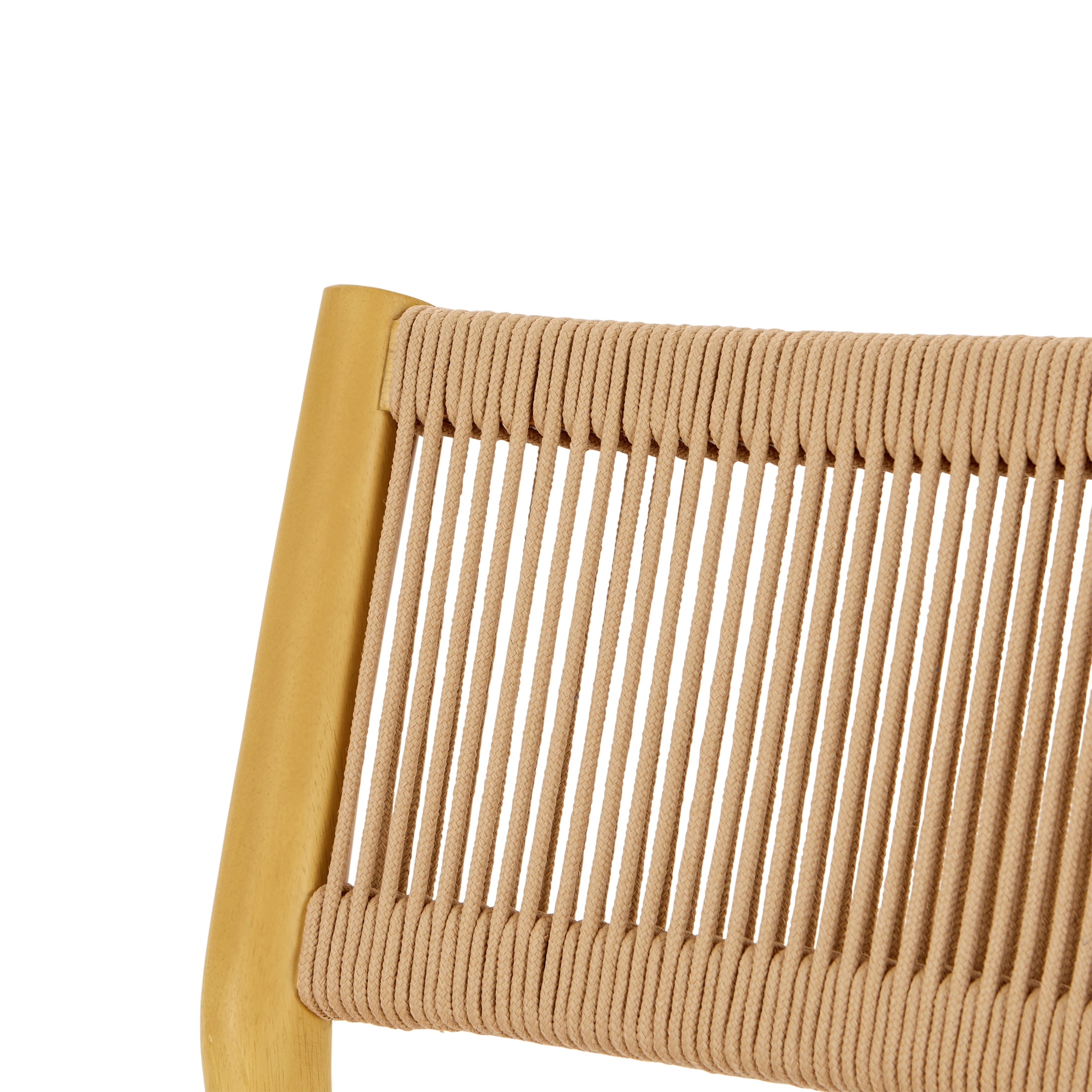 Specifications: Product 21”D x 18.5”W x 32.65”H when assembled Seat dimensions 18.5”D x 18.5”W Product 35 lbs when assembled Natural pine finish, cream-colored seat Solid wood frame, polyester seat Package dimensions 39.4”D x 21.5”W x 12.8”H / 41.8 lbs Versatile — suitable for modern, rustic, and farmhouse decor aesthetics Maximum load weight 250 lbs Curved backrest made of woven rope for comfort and unique style Sold in sets of two Assembly required