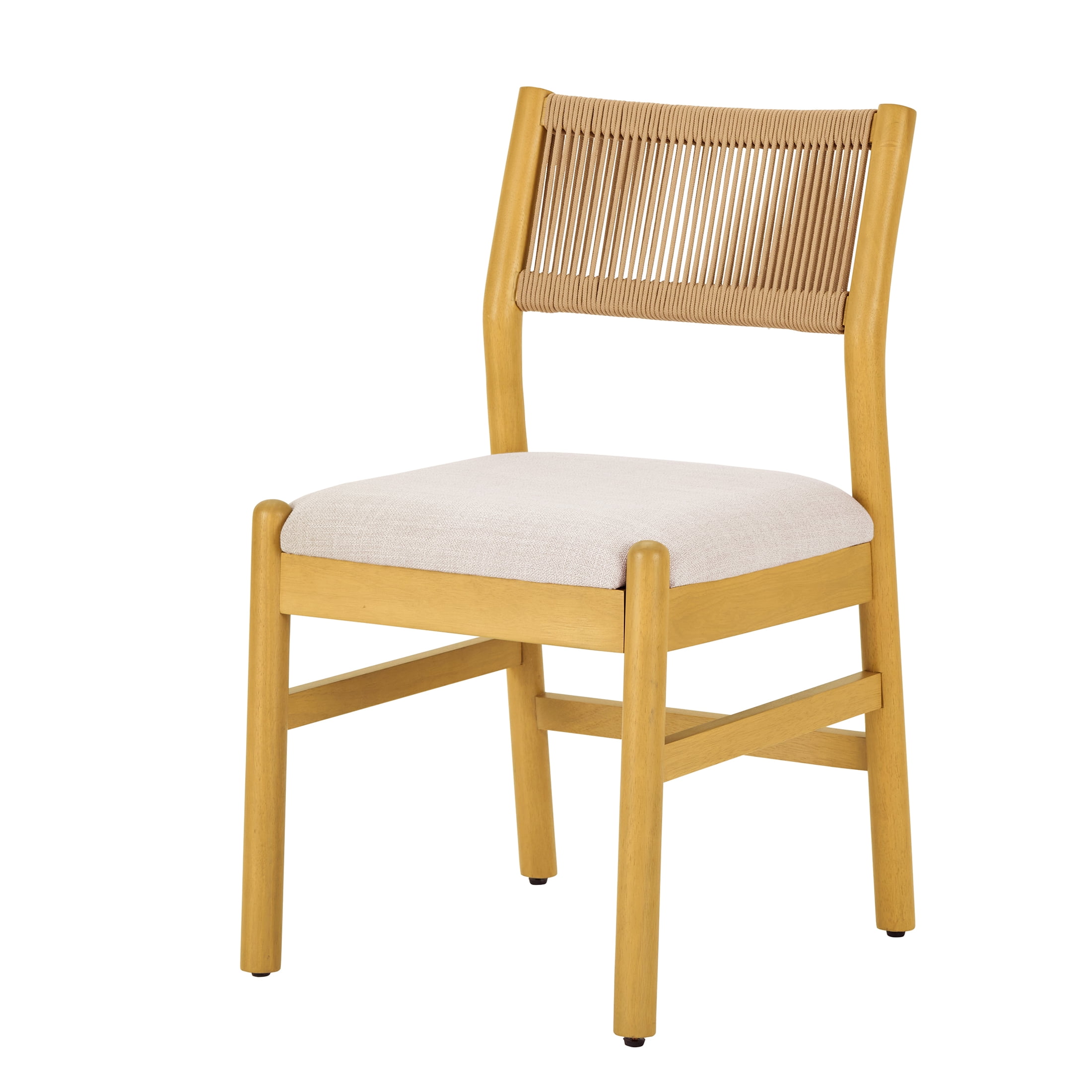 Upgrade your dining room with the contemporary charm of the Lillian Fluted Dining Chairs from Better Homes & Gardens. These modern chairs blend effortlessly into any contemporary home, featuring a sleek natural pine finish and a cream-colored polyester seat that brings both warmth and sophistication to your space. The standout woven rope backrest offers a unique, textured design, adding an element of stylish comfort. Perfectly suited for contemporary, minimalist, or coastal-inspired décor, these chairs are ideal for creating a fresh, modern look in your dining area. Sold in sets of two, the Lillian Fluted Dining Chairs provide both elegance and functionality. Add these contemporary chairs to your home for a refined and inviting dining experience.
