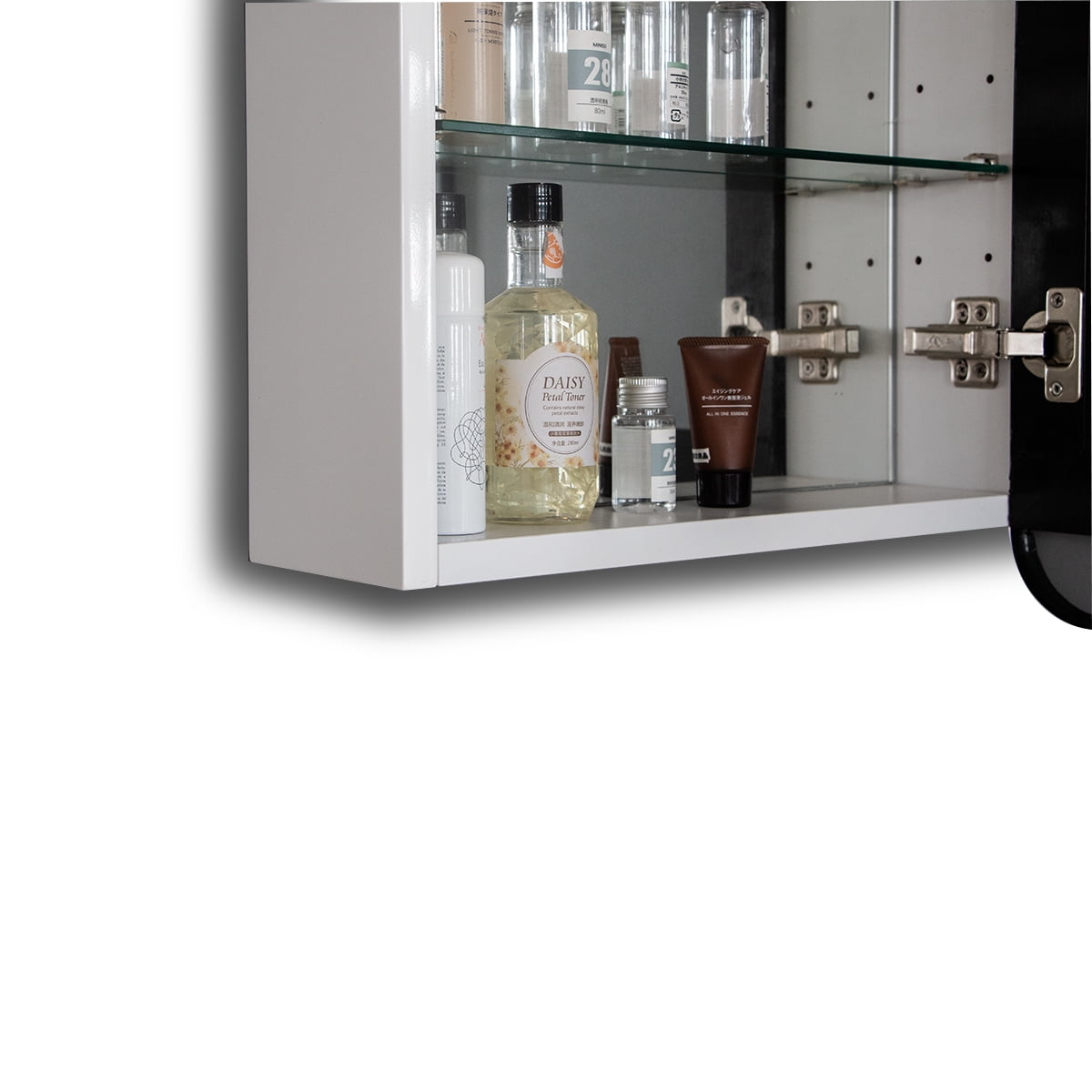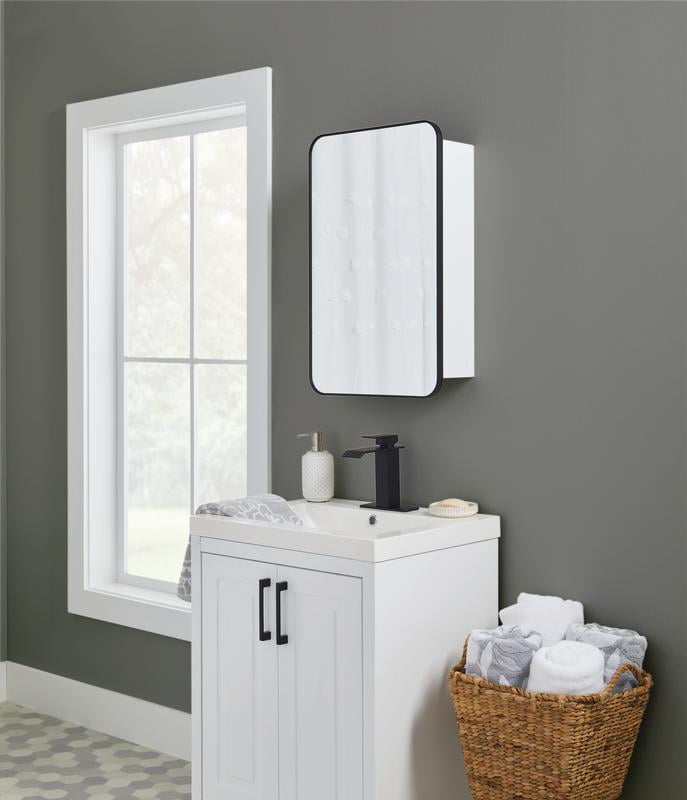 This Better Homes & Gardens mirror medicine cabinet with a matte black aluminum frame is an incredibly durable storage solution, and its sturdy construction makes this a staple that will last in your bathroom for years. With two adjustable shelves inside, you can store and organize various toiletries, decorative accessories, and more. This medicine cabinet has a mirror on both the front of the door as well as inside. With a sleek matte black frame and bright white finish, this medicine cabinet will make a classic statement in your bathroom and seamlessly match other bathroom hardware and decor. Model: HY-AM-2001-B
