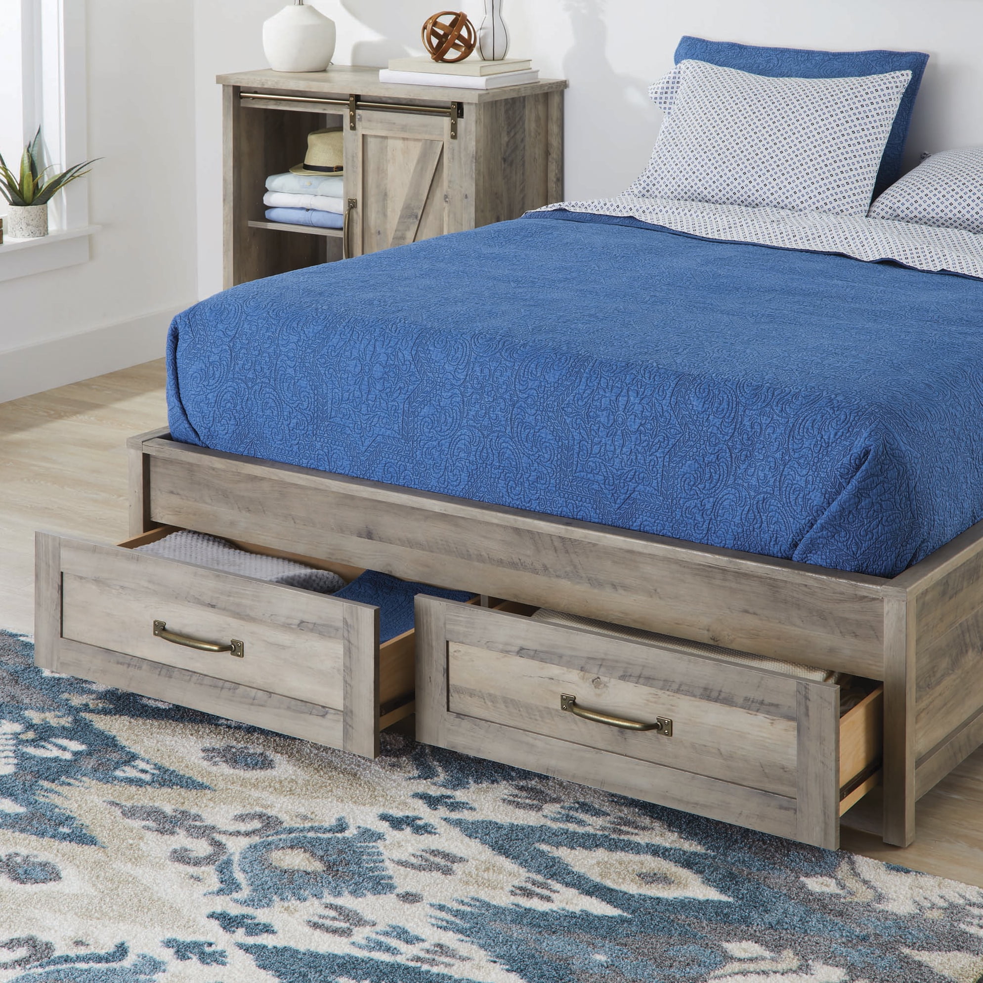 Better Homes & Gardens Modern Farmhouse Queen Platform Bed with Storage, Rustic Gray Finish