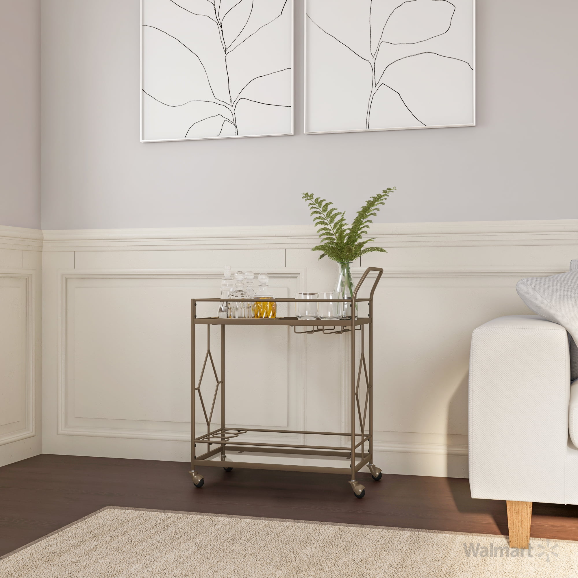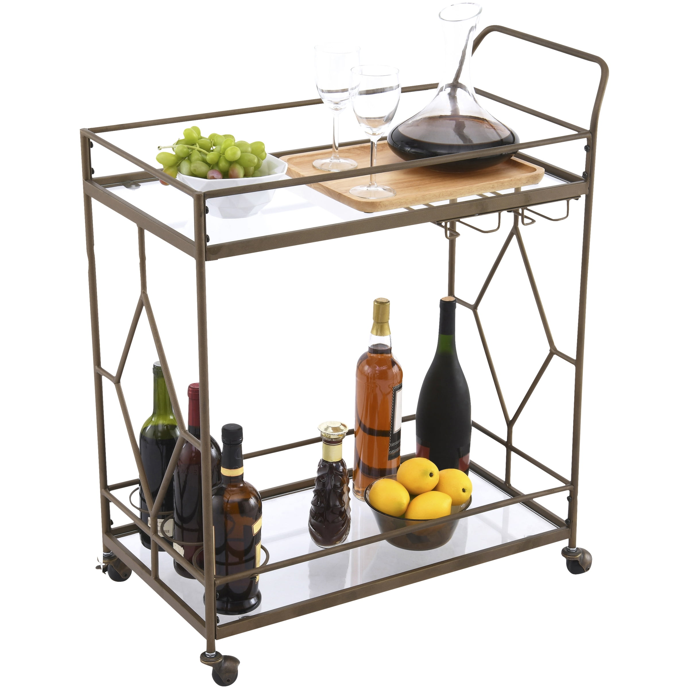 Better Homes & Gardens Fitzgerald Bar Cart with Matte Gold Metal Finish, 2-Tiers