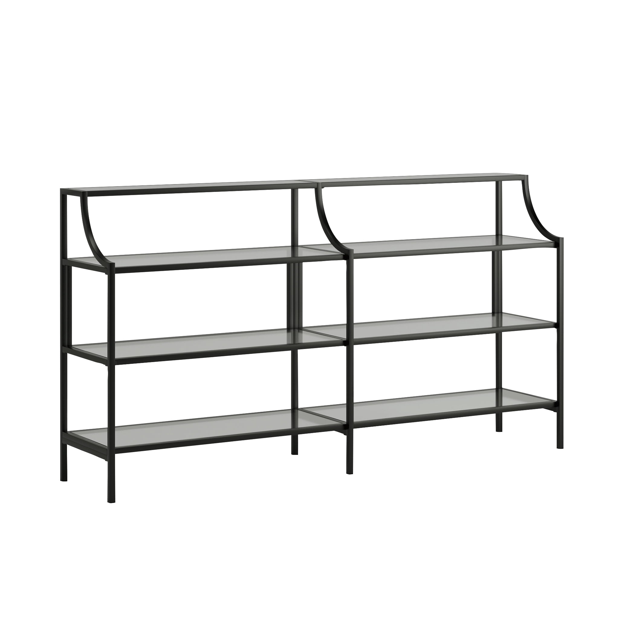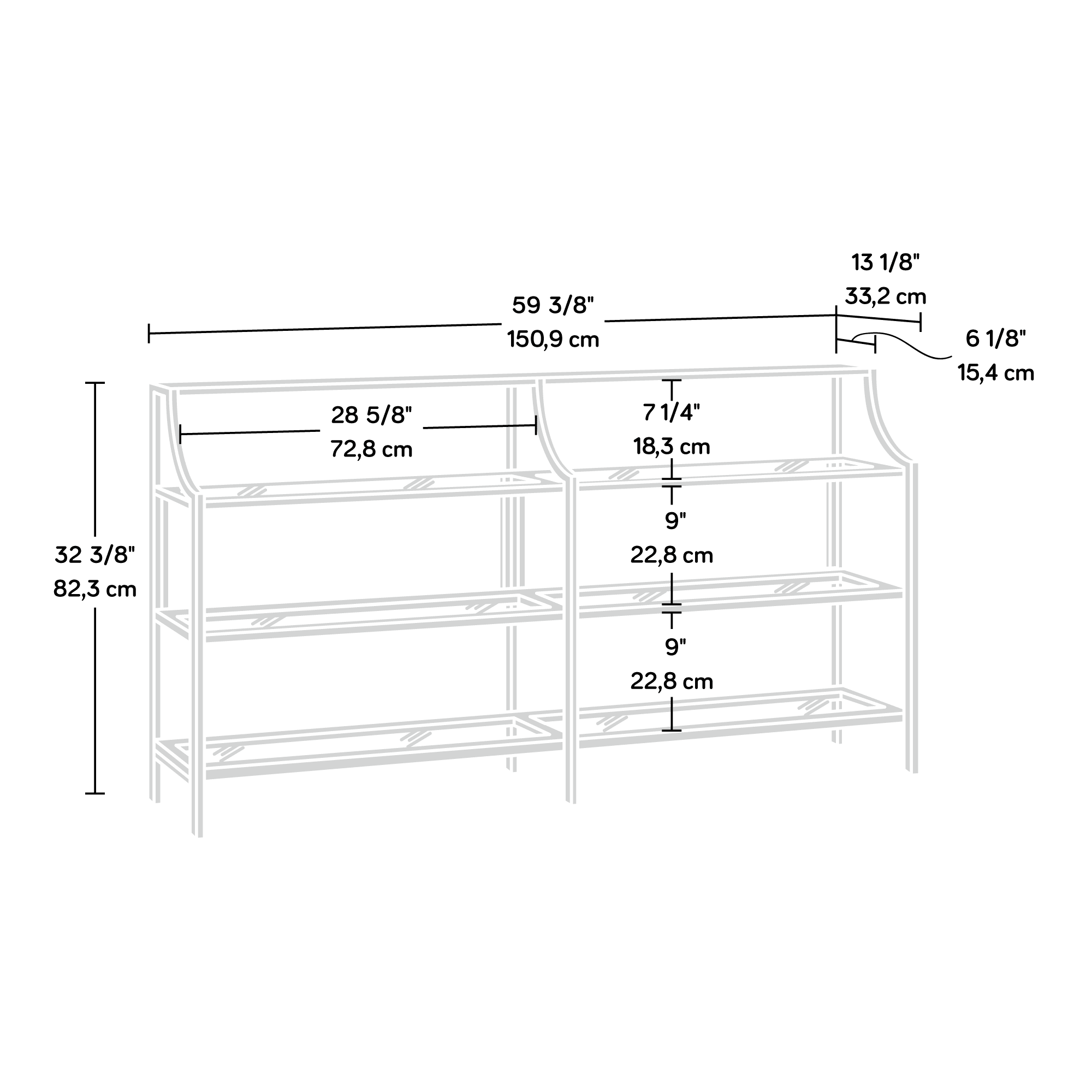 Assembled Dimensions: 59.37″ L x 13.15″ W x 32.32″ H Open shelving for storage and display of books, binders, framed photos, collectibles, and more Safety-tempered glass shelves for added detail Finished on all sides for versatile placement anywhere in your home Metal construction for long-lasting durability Black finish Model #: 427293 Box Dimensions: 67.13″ L x 15.75″ W x 6.1″ H For additional questions or any issues, please contact the manufacturer at 1-800-523-3987 Be sure to check out the Better Homes & Gardens Parker collection for more great items.