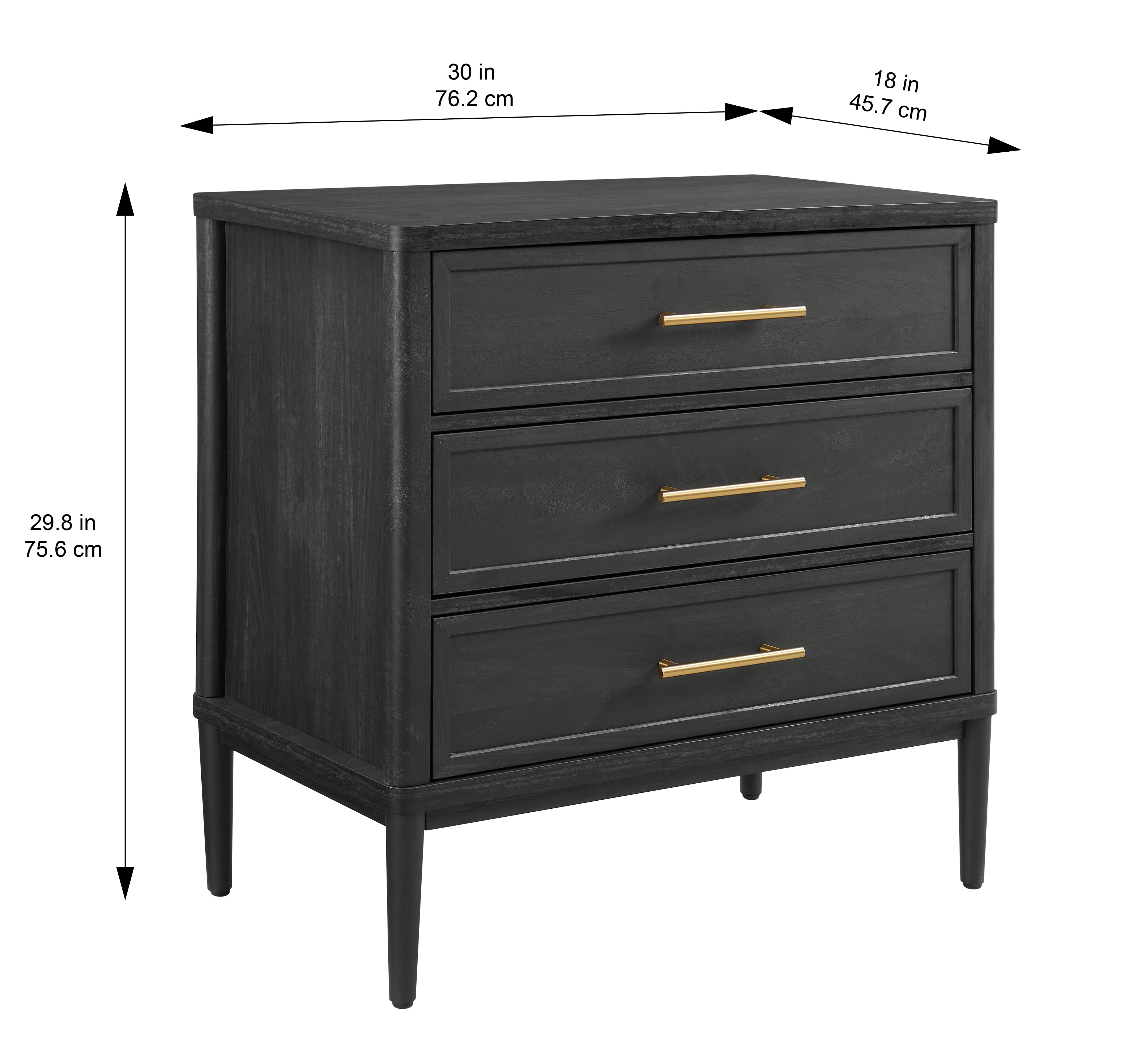 Brand: Better Homes & Gardens Ample Storage Capacity – Make the most of your storage options with this nightstand. Multipurpose- An excellent addition to any bedroom, living room, hallway, entryway and office, this nightstand is versatile and adaptable. Modern Style – Our 3 drawer nightstand is the ultimate addition to any modern home decor. With its charcoal color, this nightstand is sure to stand out in any room. Execllent Craftsmanship- This nightstand is made of premium MDF material with quality metal glides to ensure superior durability and smooth functionality. Assembly Required- With clear instructions and labeled parts included in the package, you can quickly install this storage chest. If you have any questions, please feel free to contact us. Item Specifications: Product Dimension: 30″D x18″W x29.5″H Packaging Size: 88*54.5*24.5cm Weight: 76 lbs (34.5kgs) Recommended Rooms: Bedroom; Living Room Model: BHS336249972028