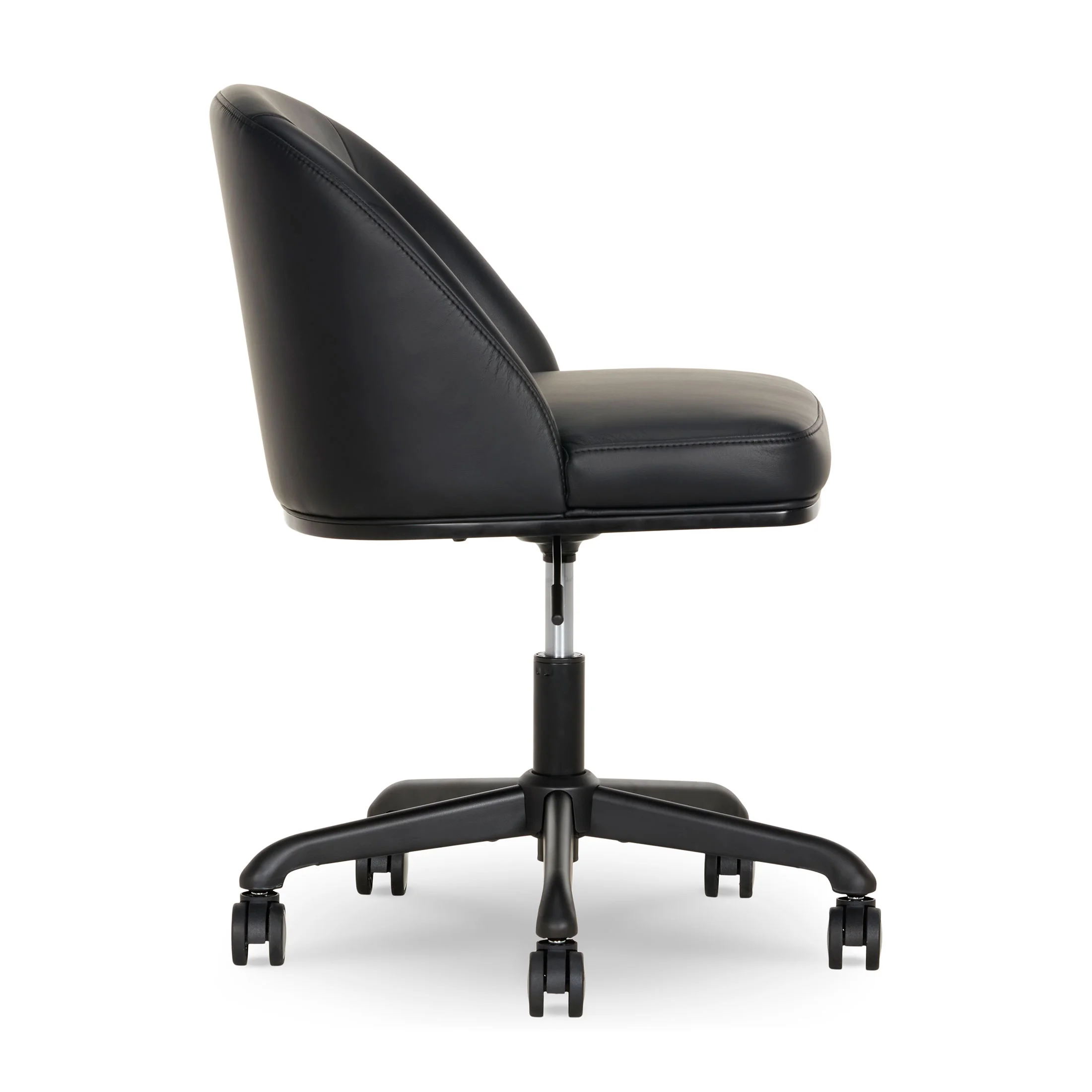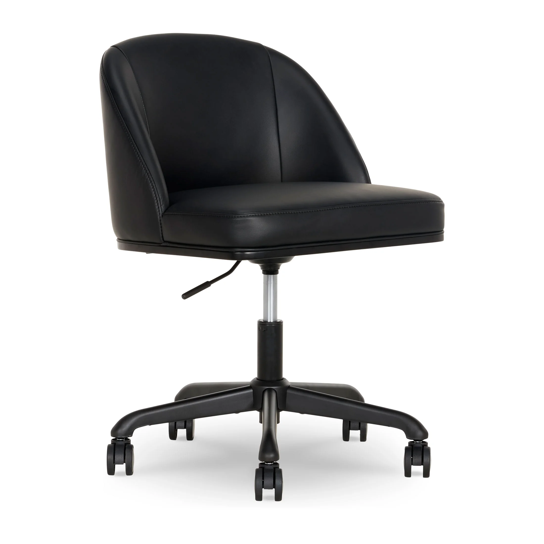 Curved-back design brings style and functionality to liven up your workspace Compact profile fits easily in small spaces Adjustable seat height with gas lift and control lever 360° dual-wheel casters and smooth-swivel seat for effortless mobility Durable metal base provides reliable support Available in three chic colors to suit any aesthetic: Black, Effie linen and Effie Smoke Easy assembly with no additional tools required Load Capacity: 275 lb Product Dimensions: 23.25 in W x 25.75 in x 29.5 – 33.25 in H (59.1 cm x 65.4 cm x 74.9 – 84.5 cm) Packaging Dimensions: 21.75 in x 11.25 in x 22 in Model# BH25000052520OW, BH25000052520SM, BH25000052520BK
