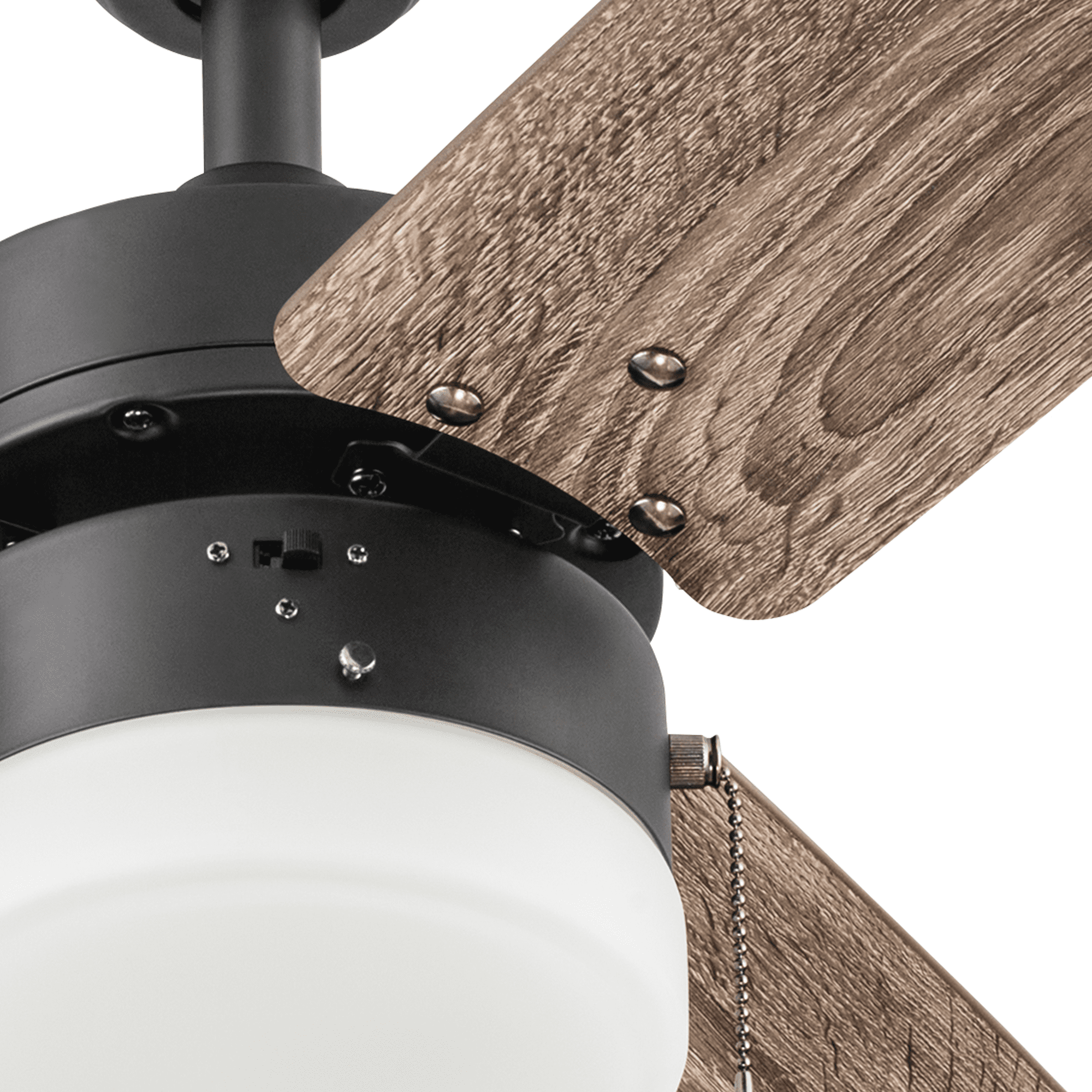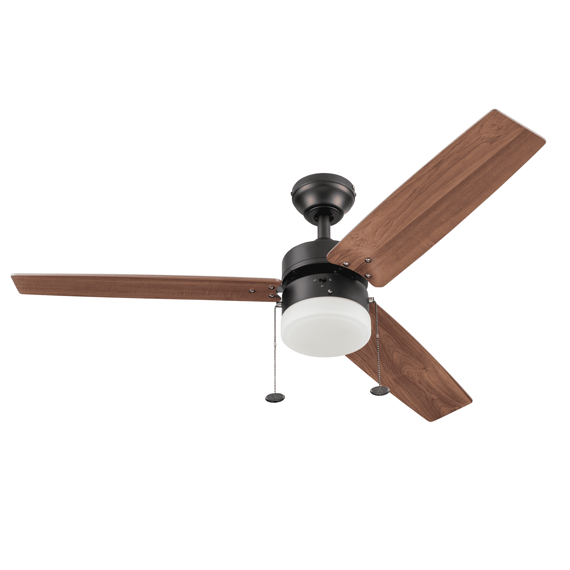Better Homes & Gardens Olson 48″ Oil-Rubbed Bronze Ceiling Fan 3 Reversible Blades- Choice of Trendy Rough Pine or Classic Chocolate Maple Finishes Modern, Contemporary Style Oil-Rubbed Bronze Finish Frosted Globe Light Kit 3 Pull-Chain Adjustable Speed Settings Reversible for Energy Savings Throughout Winter and Summer Months High Quality and Quiet Performance Indoor Ceiling Fan