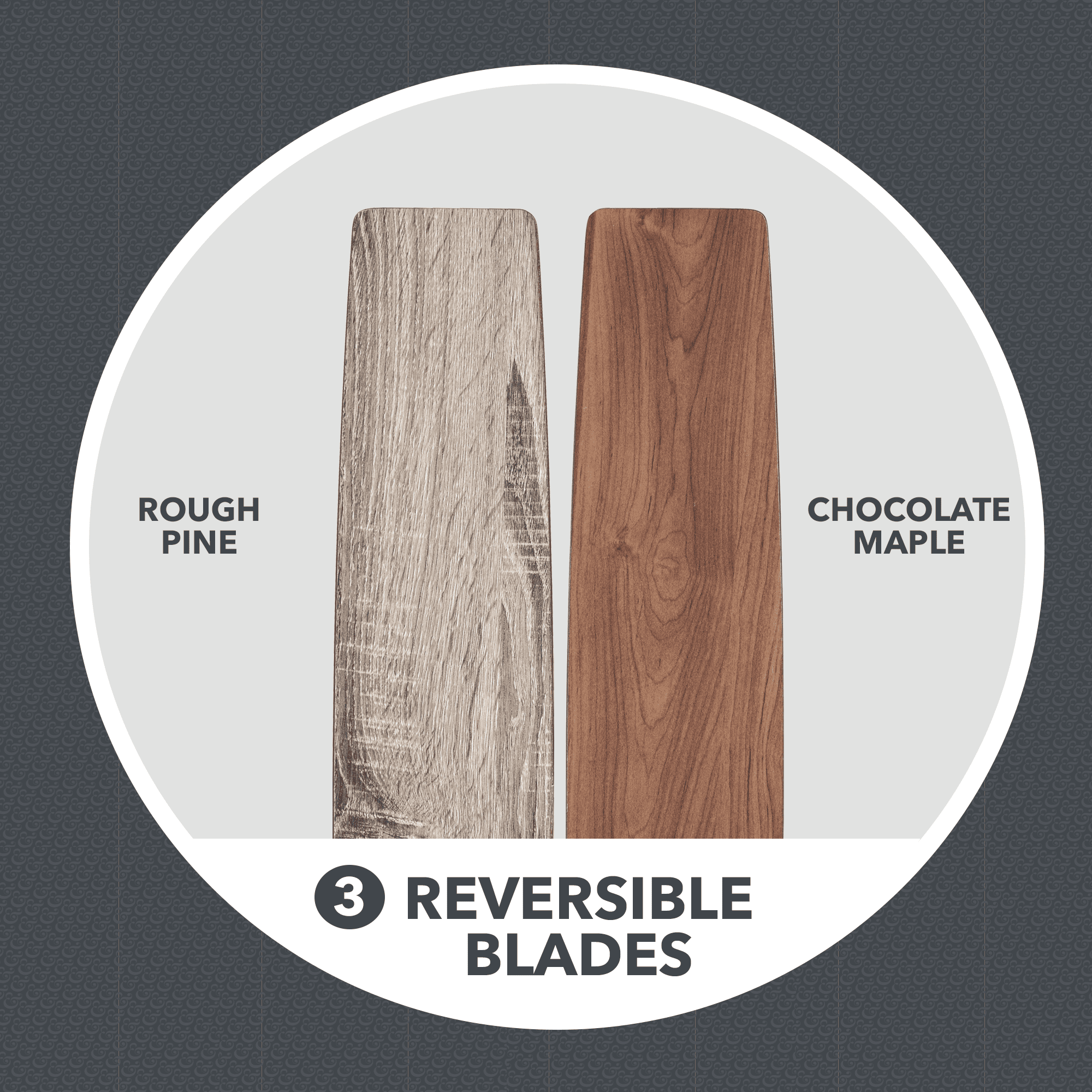 The Better Homes & Gardens 48″ 3 Blade Ceiling Fan in Oil-Rubbed Bronze is the perfect addition to your trend-setting spaces, serving up both adequate air flow and a modern, contemporary aesthetic. With three pull-chain adjustable speed settings, this fan is sure to deliver a high quality, quiet performance while saving energy both in the summer and winter months. It is very easy to install and can be conveniently mounted from both standard and angled ceilings. It includes two E26, B11 LED bulbs, sure to illuminate your space through a timeless frosted globe. Each of the five blades is reversible, offering a choice between trendy Rough Pine or classic Chocolate Maple, both equally complementing the deep Bronze housing finish. This fan’s size makes it a perfect match for almost any standard living space- medium sized living rooms, bedrooms, entertainment rooms, etc. This fan is also backed by a limited lifetime warranty.