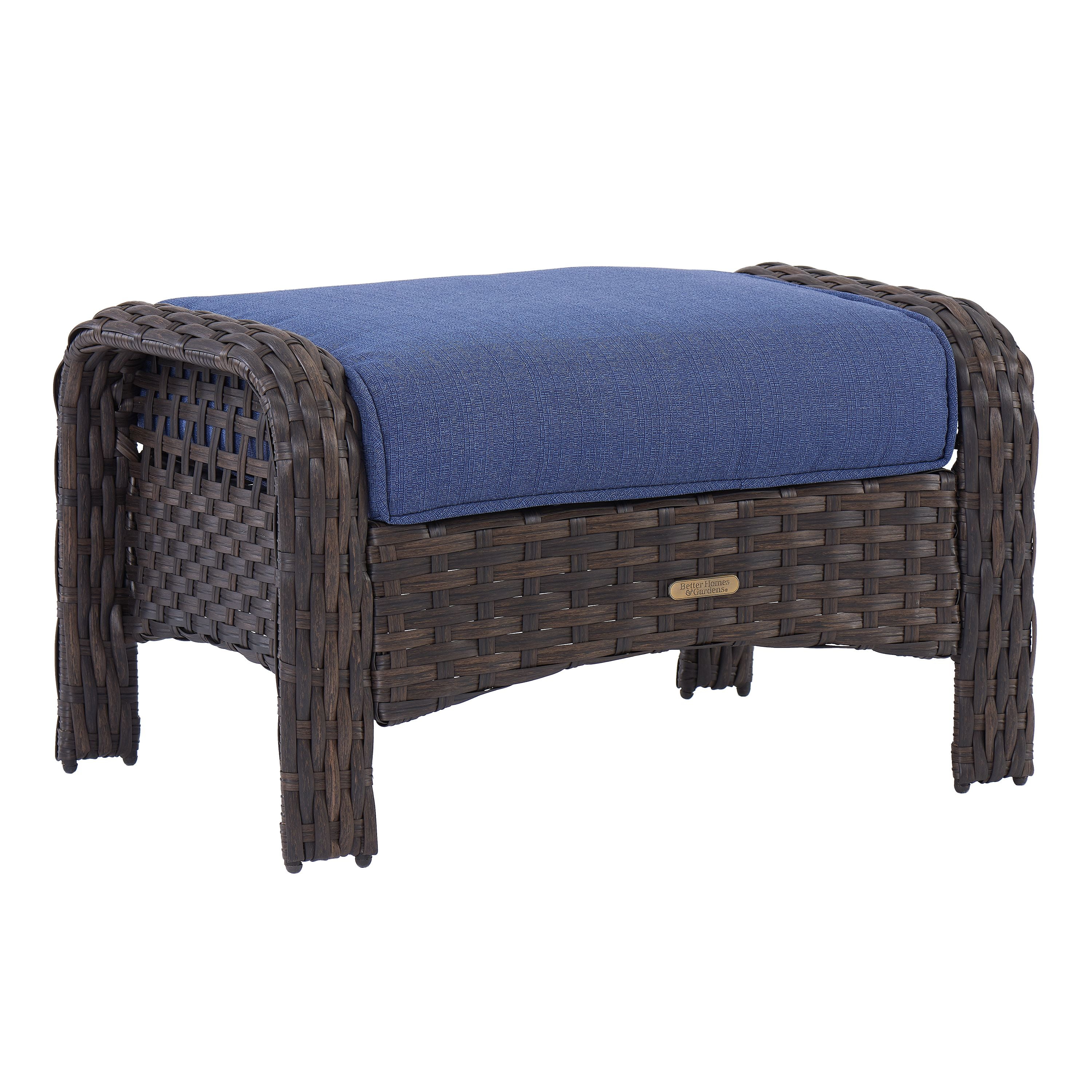 Better Homes & Gardens Ravenbrooke Outdoor Wicker 2-Pack Ottomans; Blue