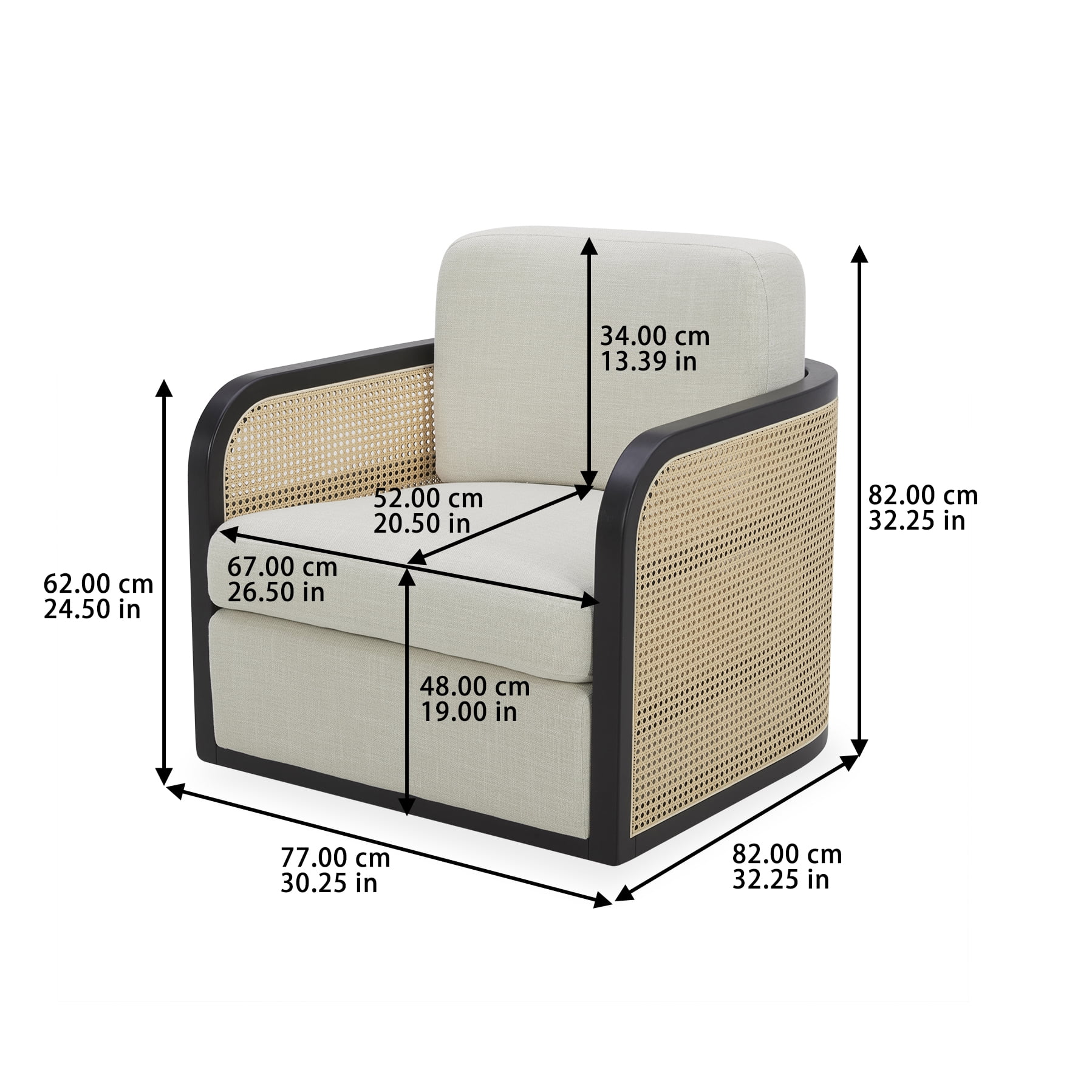 Linen-look fabric for stylish design 360-degree swivel base for easy movement Webbed seat suspension for extra support Seat Height: 33” Seat Width: 30.31” Seat Depth: 31.5” Weight Capacity: 300 lbs.