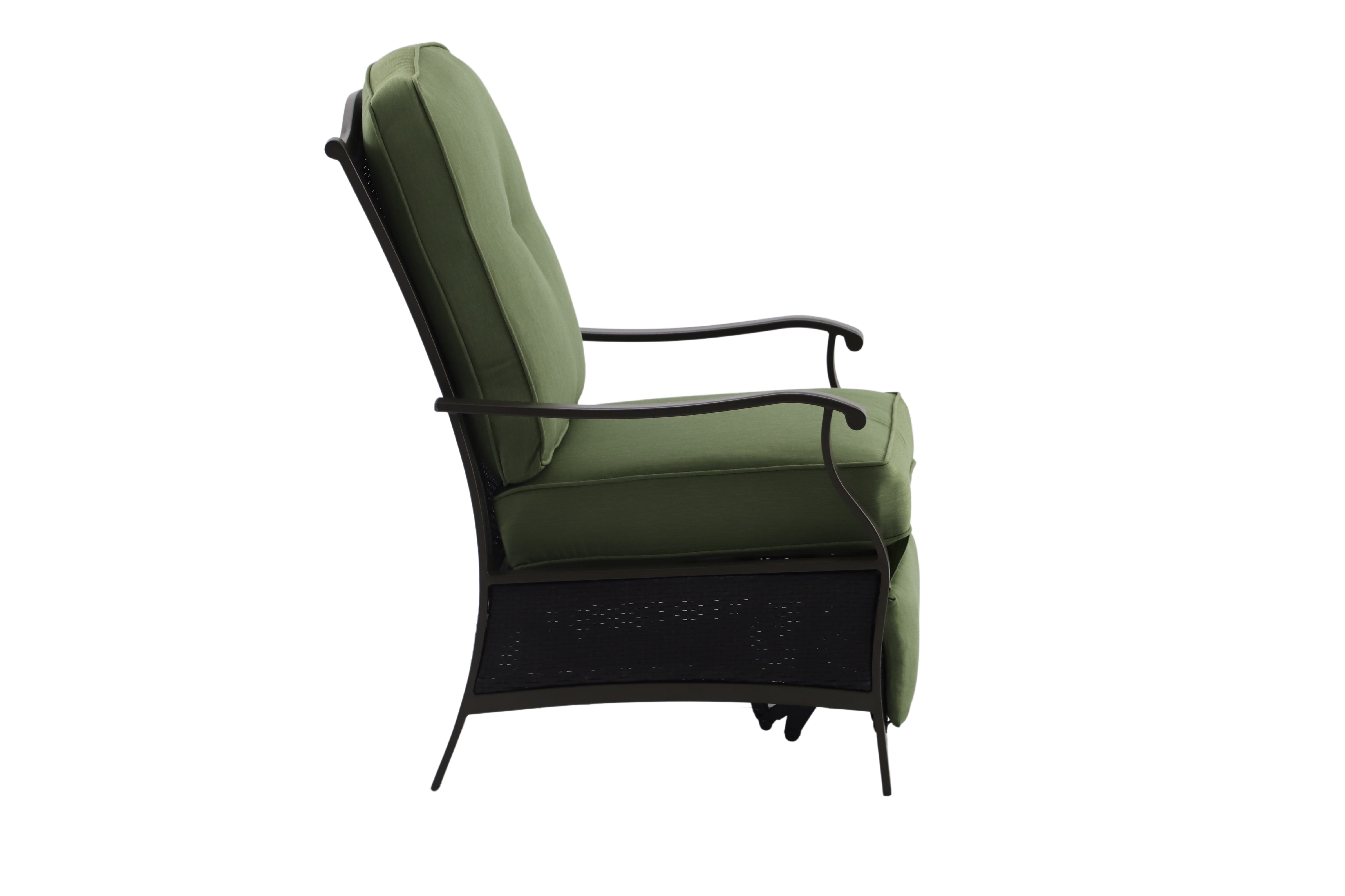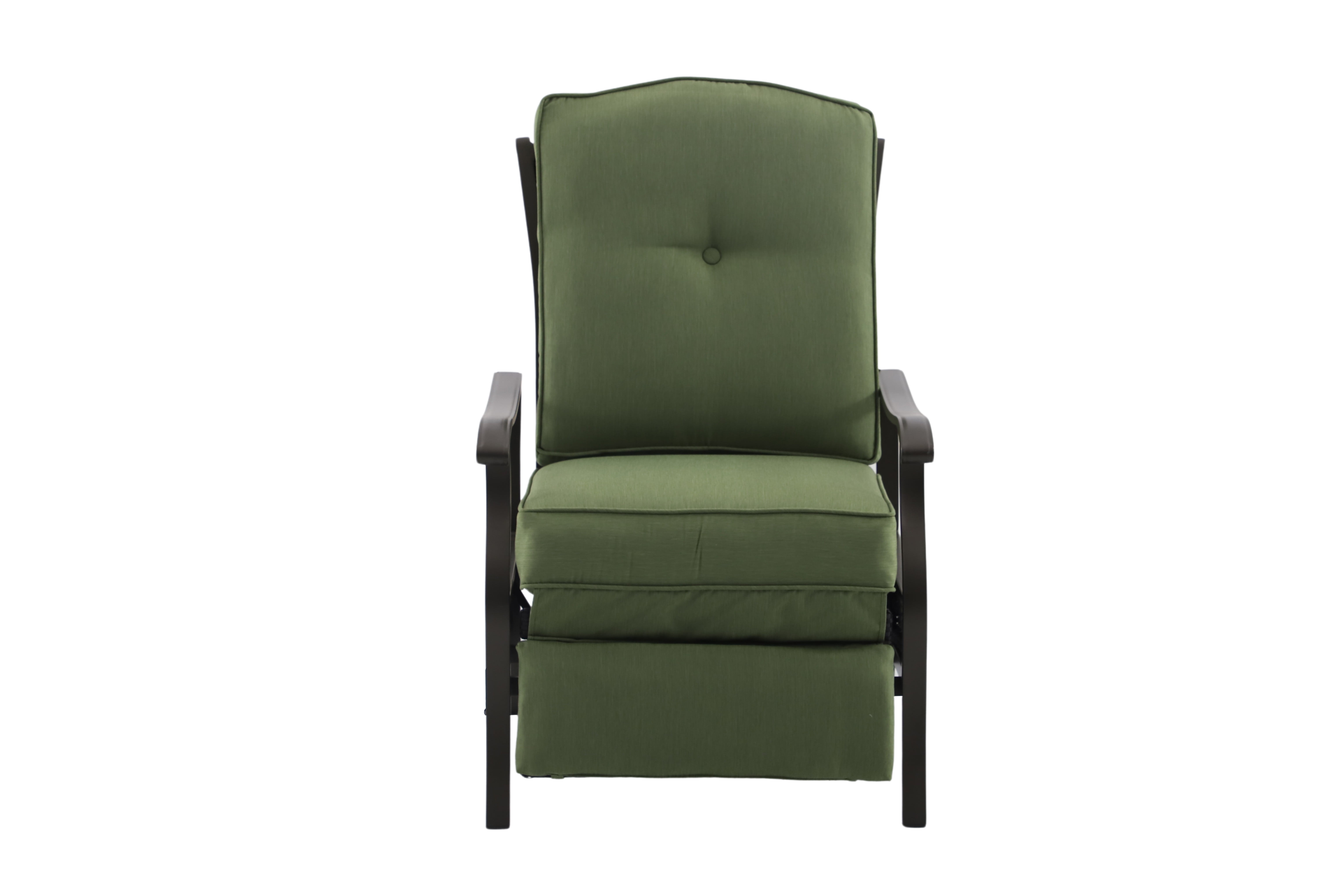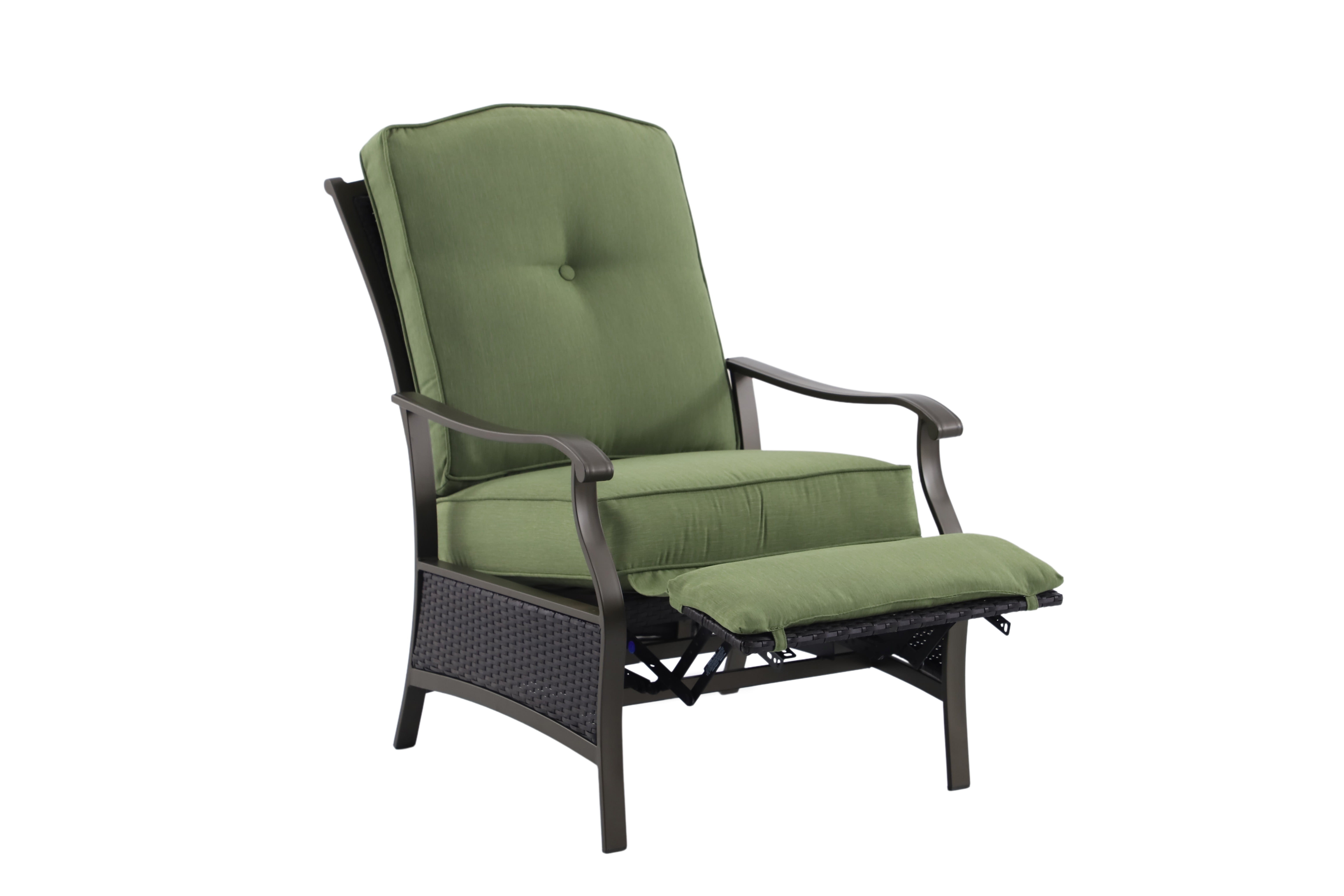 Create a serene and comfortable outdoor space with the Better Homes & Gardens Providence Steel Outdoor Recliner with Cushions, Green/Bronze. This recliner is perfect for unwinding and enjoying nature. The cushions are wrapped in green, fade-resistant, and moisture-wicking olefin fabric for ultimate comfort. The sturdy frame is made of powder-coated, rust-resistant steel with a bronze finish, and wicker accents add a touch of traditional style. This recliner is part of the Providence outdoor furniture collection and comes with assembly instructions. Relax, read, or have a pleasant conversation on the Providence Steel Outdoor Recliner, a cozy addition to any outdoor area.