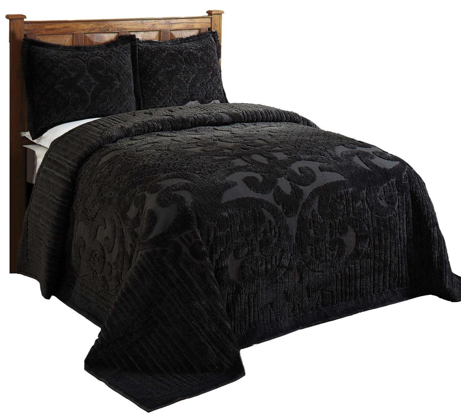 Better Trends Black Ashton Medallion 100% Cotton Bedspread, Full/Double, for Adult