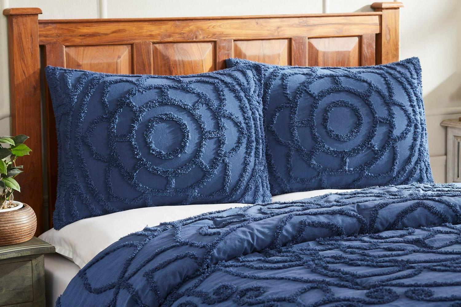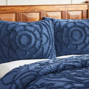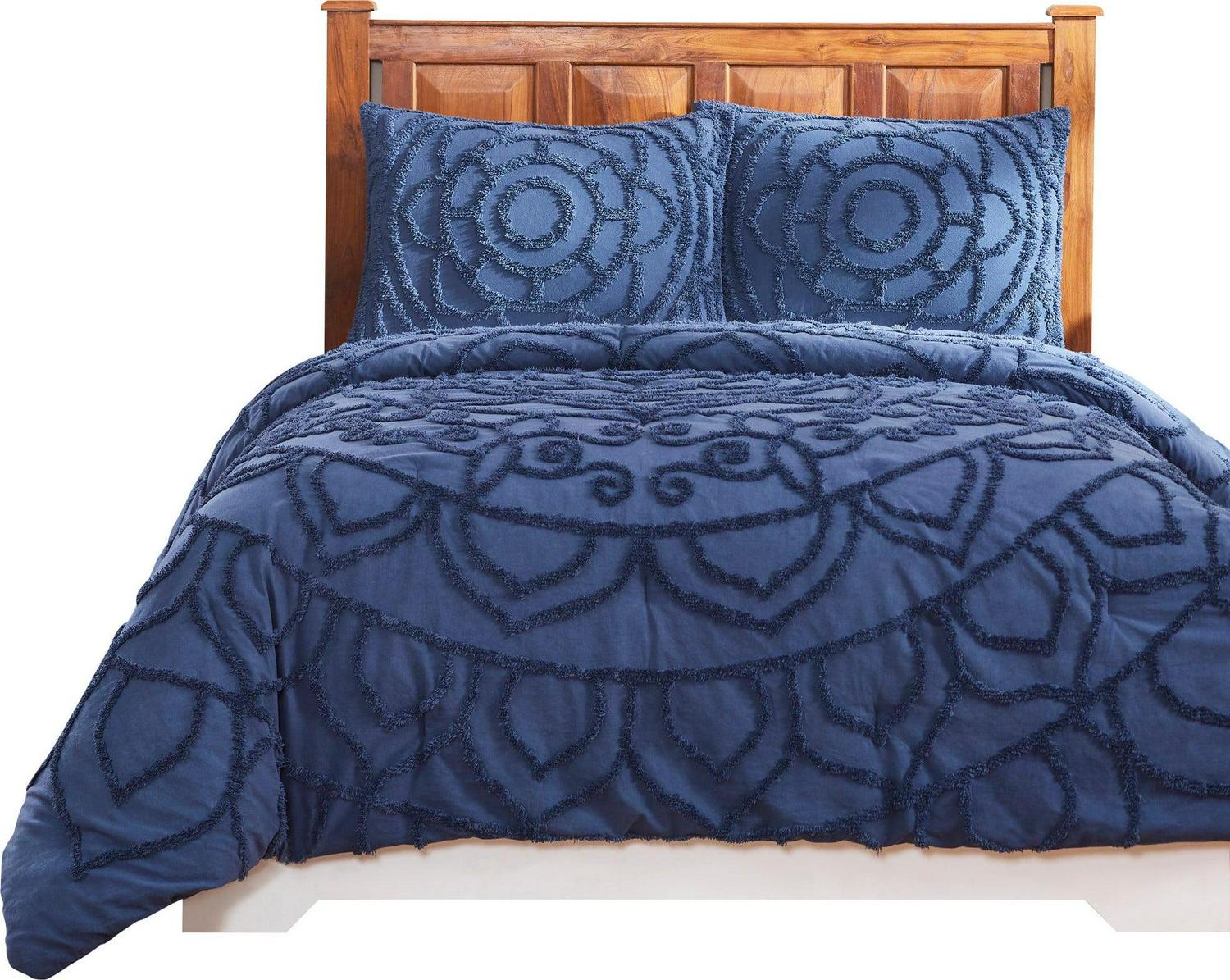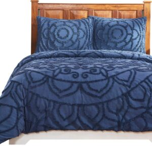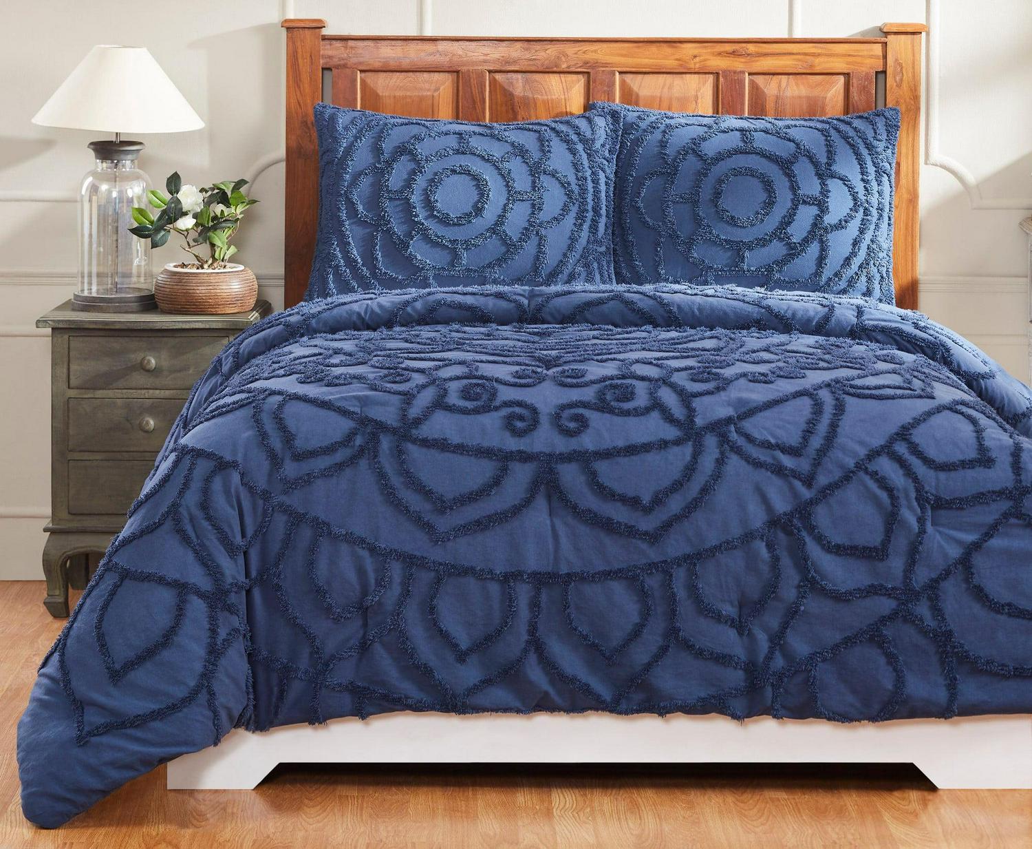 Better Trends Cleo Comforter Set, 100% Cotton Tufted Chenille, Full/Queen, for Adult, Navy