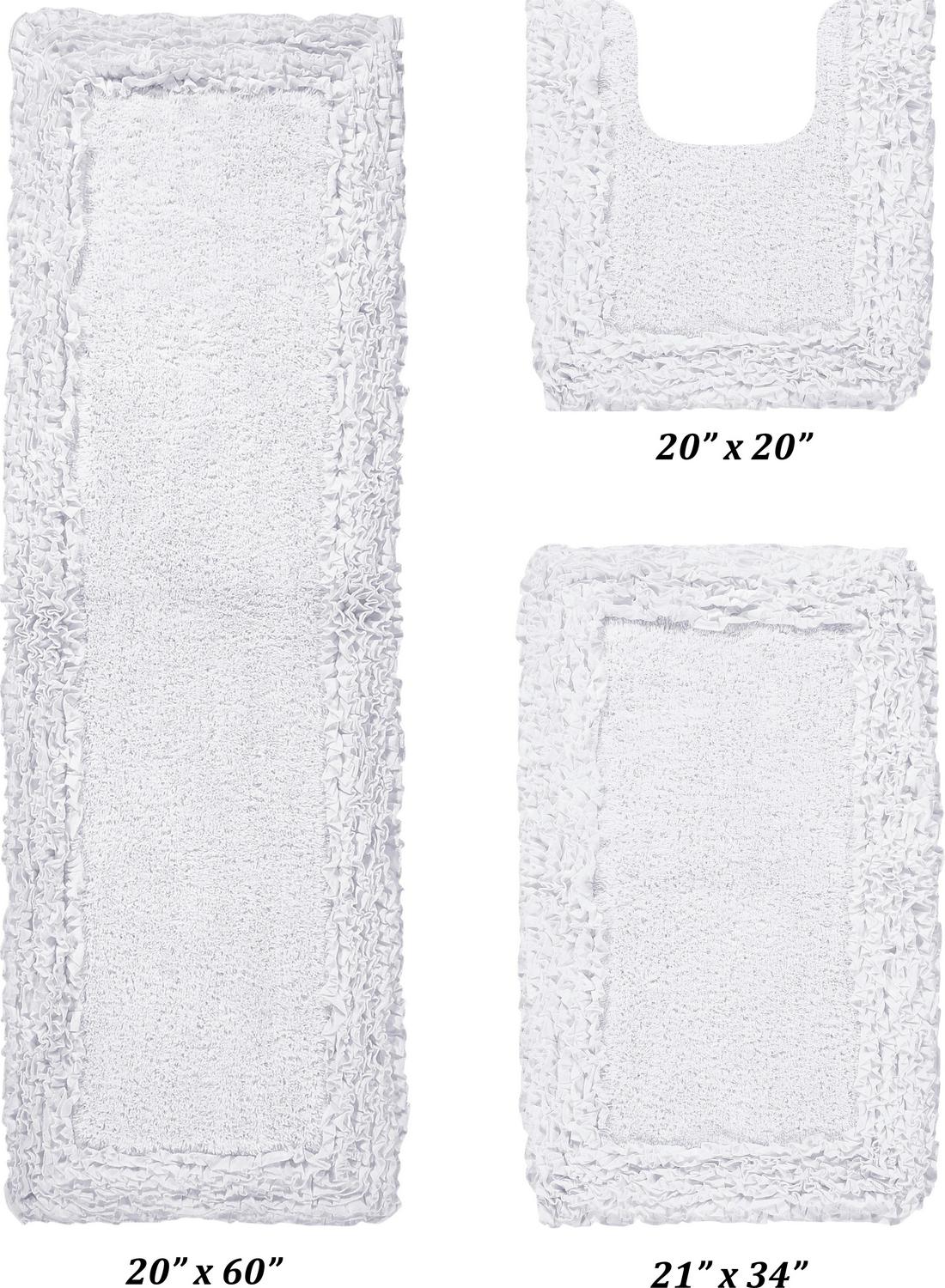 Better Trends White Shaggy Border 100% Cotton 3 Piece Bath Rug Set