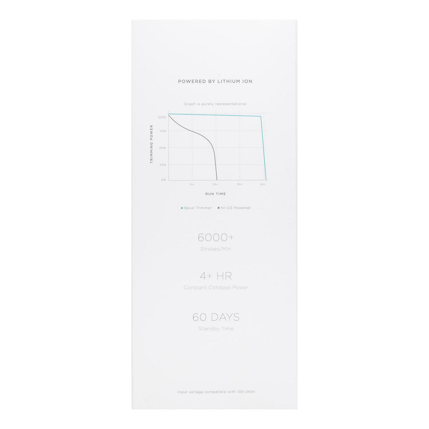 Combining innovations in design, power and cleanliness, the Bevel Trimmer is a world-class device for both barbershop and home grooming needs. Go cordless and enjoy the freedom of movement without sacrificing power and precision. Whether at the shop or on-the-go, Bevel Trimmer delivers the same cutting power with or without the cord. Get 5+ hours of continuous cordless power. Holds a charge for 60 days. Tired of having to go find tools and a flat edge to adjust your trimmer blades We are too. Our innovative Bevel Dial allows you to adjust your trimmer blades to a zero gap alignment quickly.