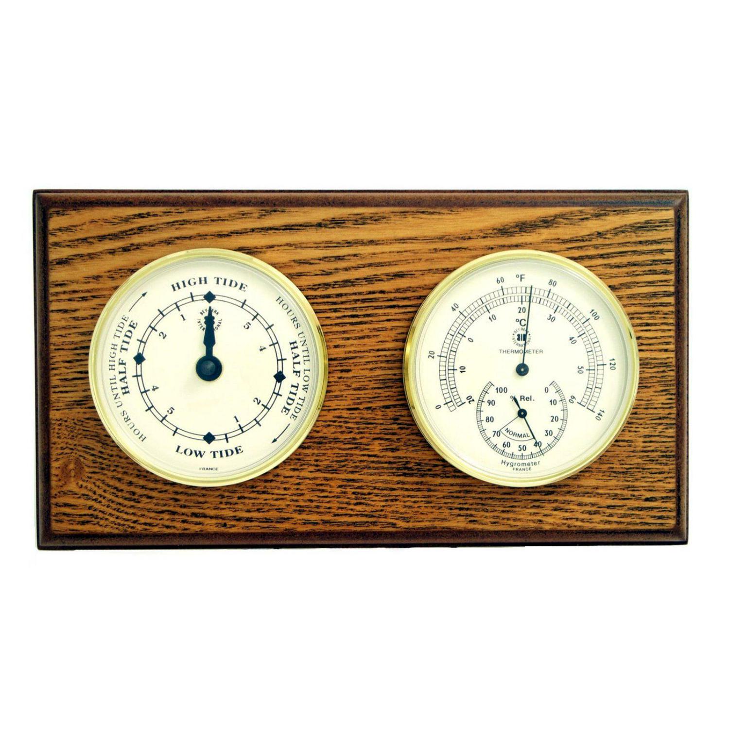 Bey-Berk International Brass Tide Clock, Thermo./Hygro. on Oak T.P.