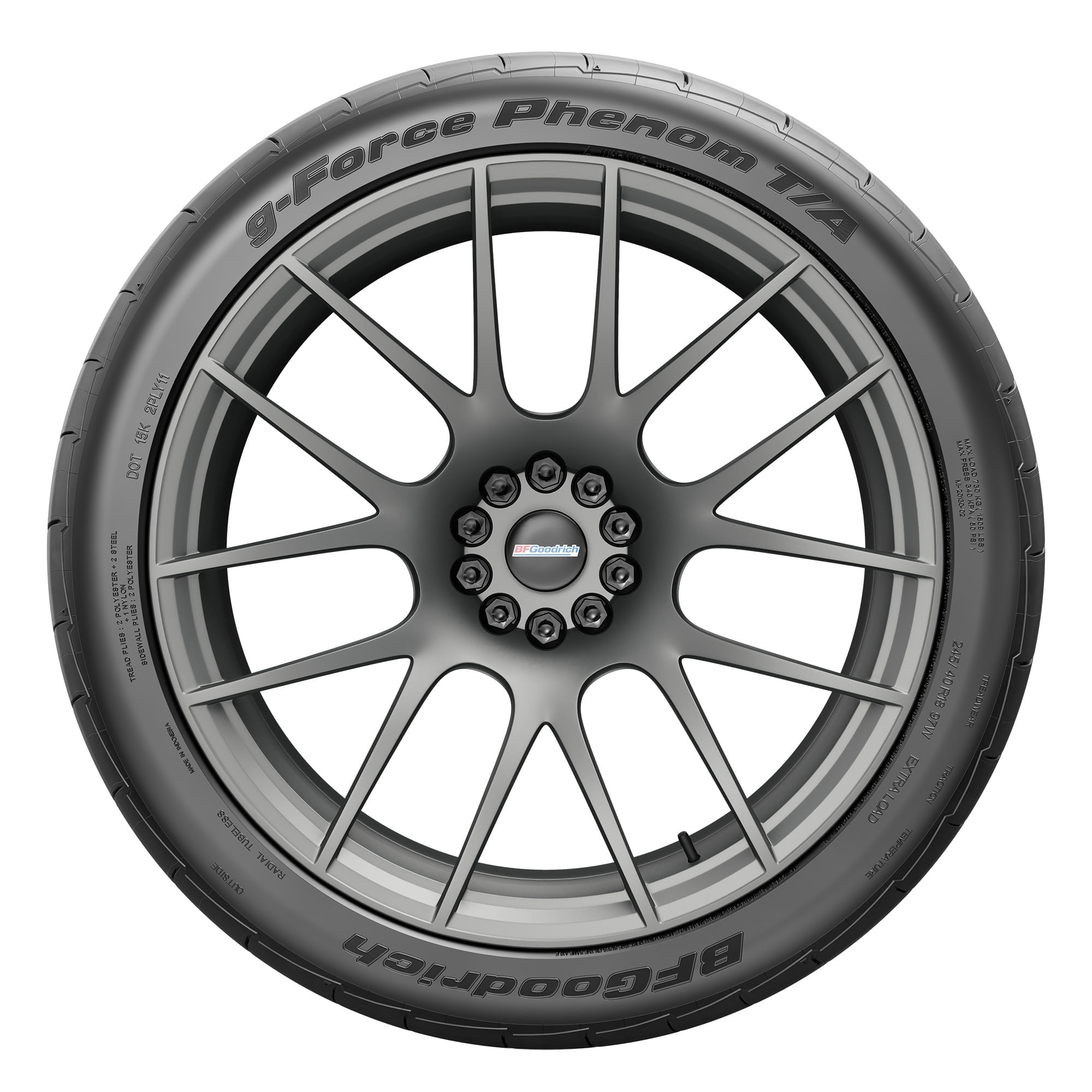 BFGoodrich Tires is an iconic American Brand with over 115 years of tire manufacturing experience. They make tires for people who want more fun from their vehicles and have a passion for driving. BFGoodrich takes pride in the fact that their tires are engineered by people who spend their weekends off-roading or at the track, and the result is BFGoodrich tires are proven to win in racing competition from Baja to Sebring. They bring out the performance in racing vehicles and vehicles just like the one you drive every day. The G-Force Phenom T/A is BFGoodrich’s Ultra High Performance Summer tire developed for enthusiast drivers of sports cars, coupes, performance sedans and modern muscle cars. Engineered for leading wet handling, braking and dry traction, the g-Force Phenom T/A is designed to lead the pack in both style and performance. The G-Force Phenom T/A starts with a performance-focused and silica-infused summer compound molded into an optimized dual-zone tread design that balances environmental adaptability with even stress distribution for longer wear. G-Control sidewall inserts are designed to resist deflection for optimal handling response, and in concert with broad shoulder blocks, offer strong limit feedback and cornering stability. Standard Mileage Warranty Tire Size: 235/45R18 Product May Vary From Picture Wheel/Rim Not Included