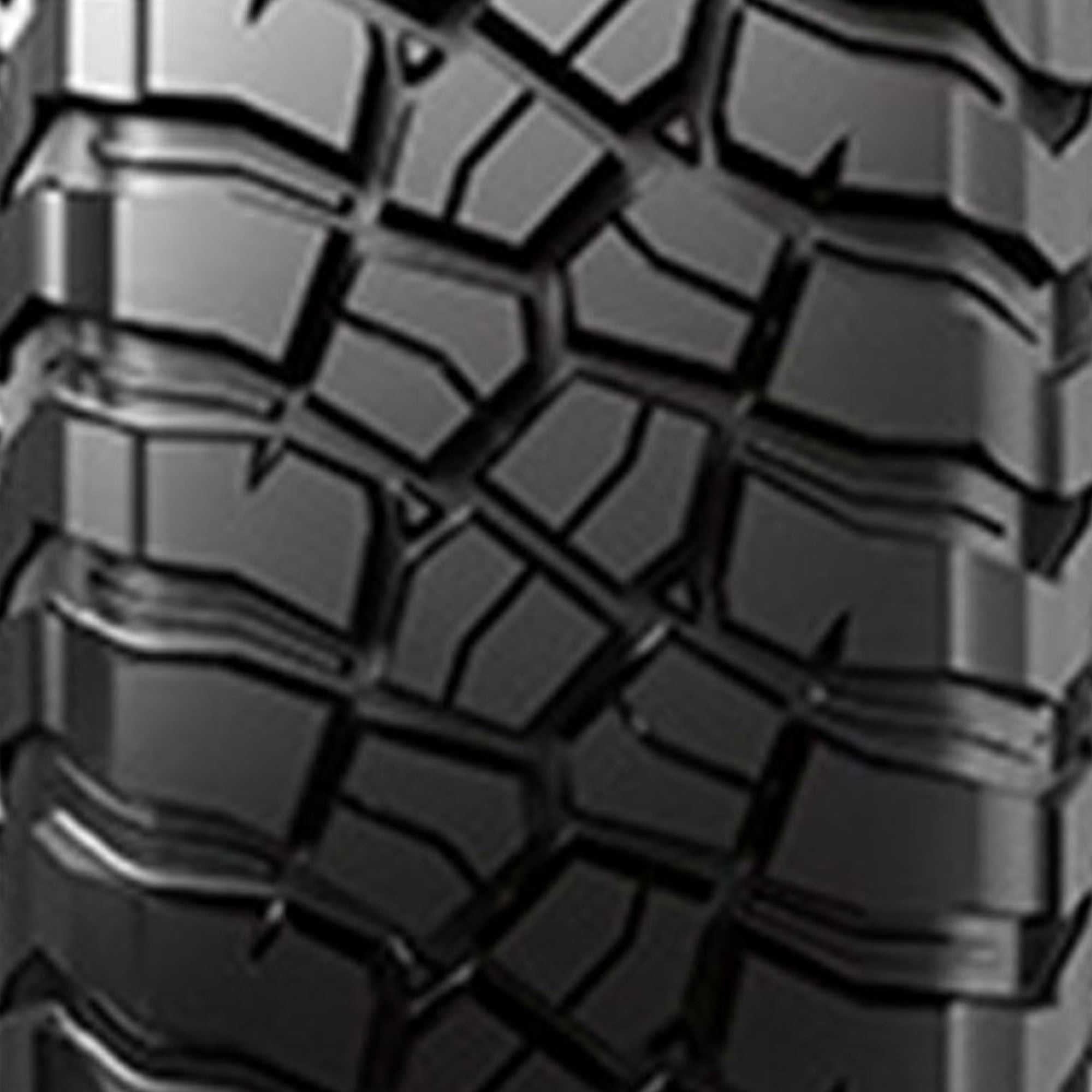 Designed for use on light trucks and SUVs Deep, aggressive tread pattern enhances traction and handling on mud, dirt and other off-road terrains Krawl-Tek compound boosts traction and grip on rocks and other slick surfaces CoreGard Max Technology protects the sidewall against damage from rocks, twigs, and other debris Traction Armor Sidewall Sculpture protects the sidewall from splitting Size: LT265/70R17 Load Range: E Product May Vary From Picture Wheel/Rim Not Included