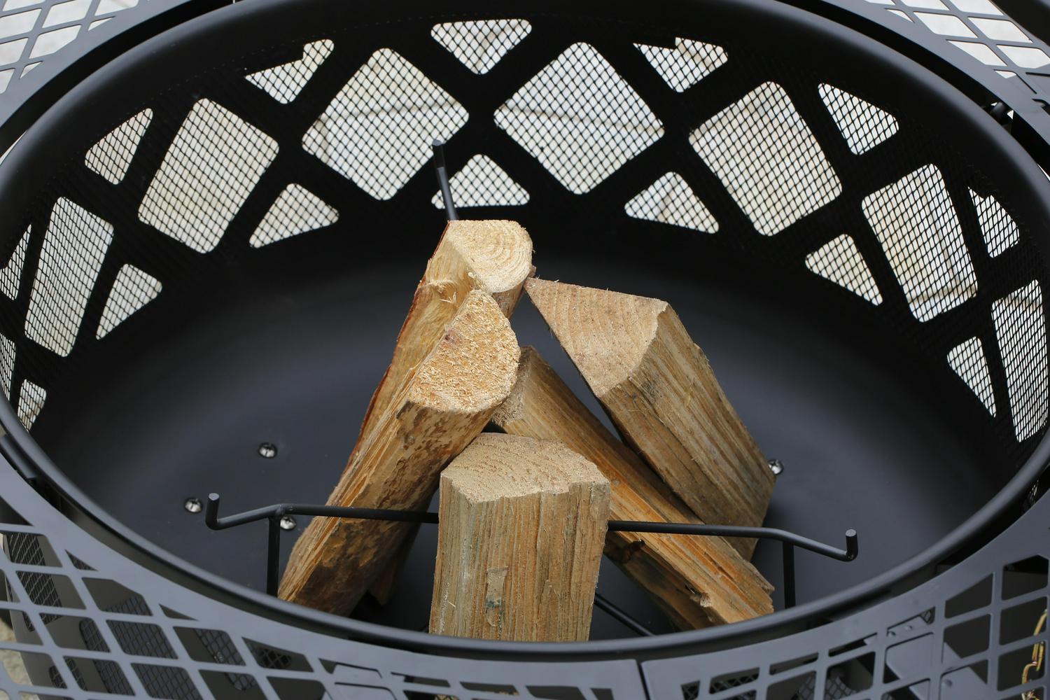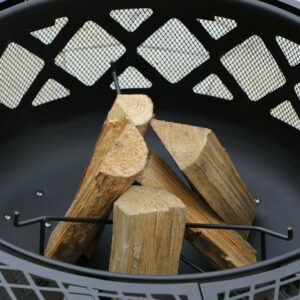 – Includes a circular metal ring located at the base to stabilize and secure the fire pit.