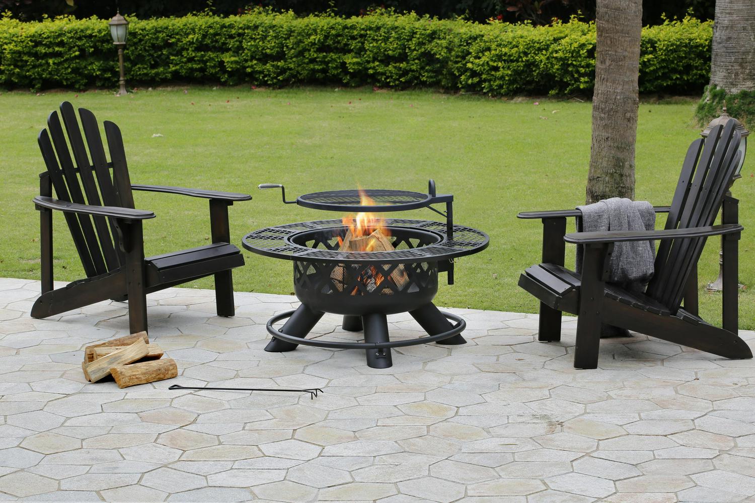 – Charcoal pan easily converts this fire pit to a tranditional grill.