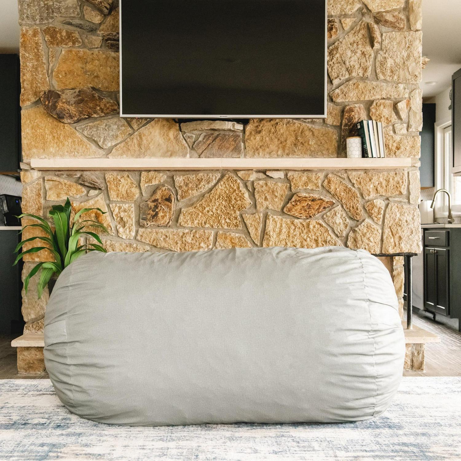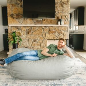 Big Joe Fuf Media Lounger Foam Filled Bean Bag Chair with Removable Cover, Fog Lenox, Durable Woven Polyester, 6 feet Giant