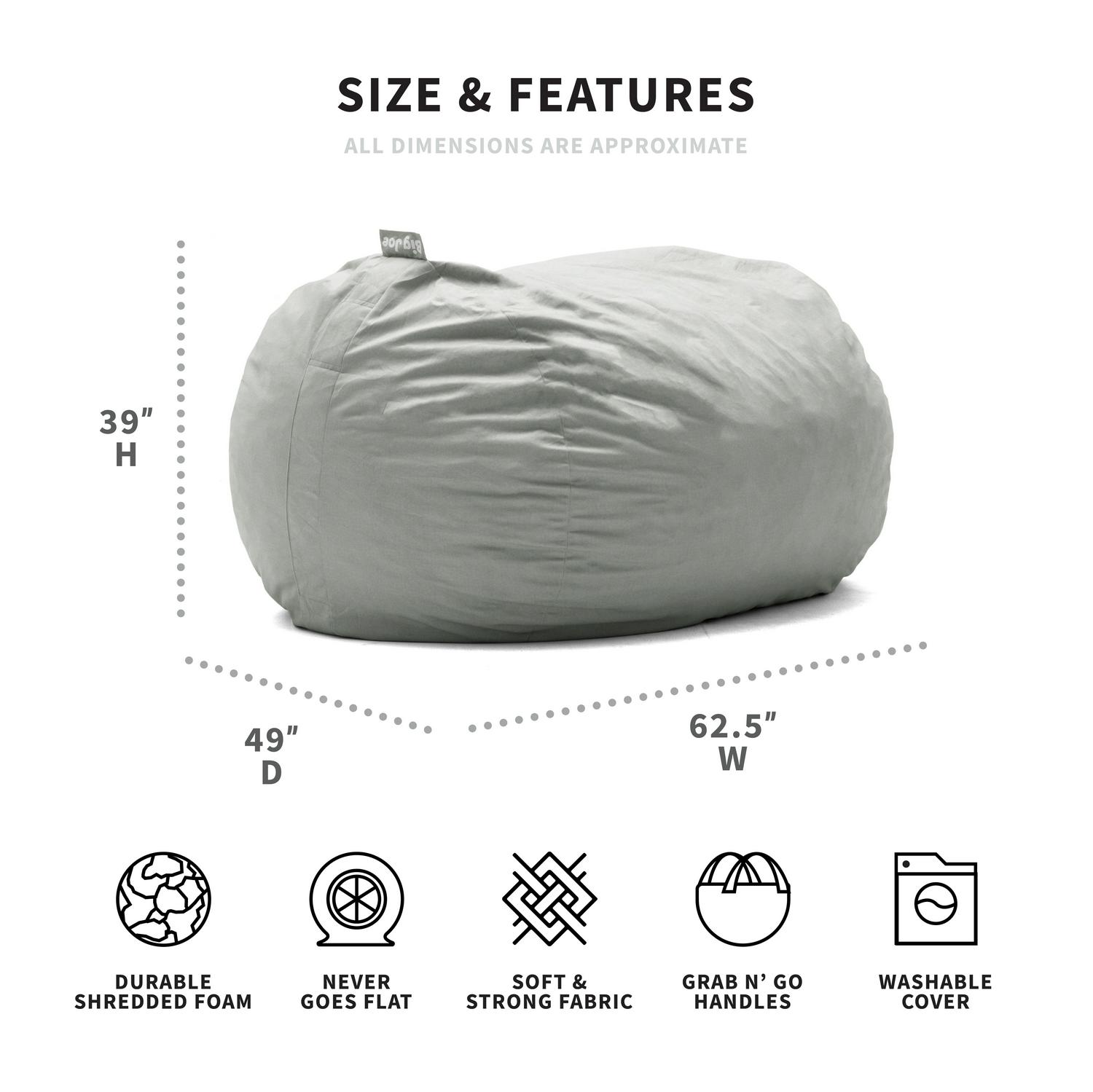 Big Joe Fuf XL Bean Bag Cover Only, Lenox 5ft, Fog