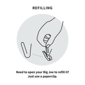 – If you need to open your bean bag to add filling, simply use a paperclip to pull it open; detailed instructions can be found on the warning label attached to your Big Joe