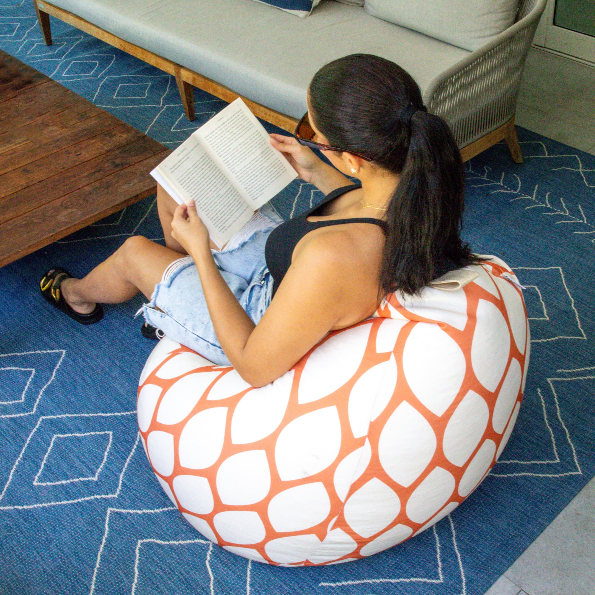 COMFORT MEETS STYLE: Upgrade your favorite patio hangout spot with the Tuffet bean bag chair! The Tuffet is lightweight, easy to move, and filled with foam beads for max comfort. Pair it with our other Big Joe Patio™ products for a complete look! DURABLE MATERIAL: Covered in our durable Sunmax fabric to withstand those sunny rays. PERFECTLY FILLED: We purposely fill your bean bag with the perfect amount of beans, because we know an over-filled bean bag is not comfy! IT’S IN THE DETAILS: Double-stitched with dual zippers for extra safety and durability. Includes an on-the-go handle to travel with ease. HOME GROWN: Big Joes are designed and filled in the USA.