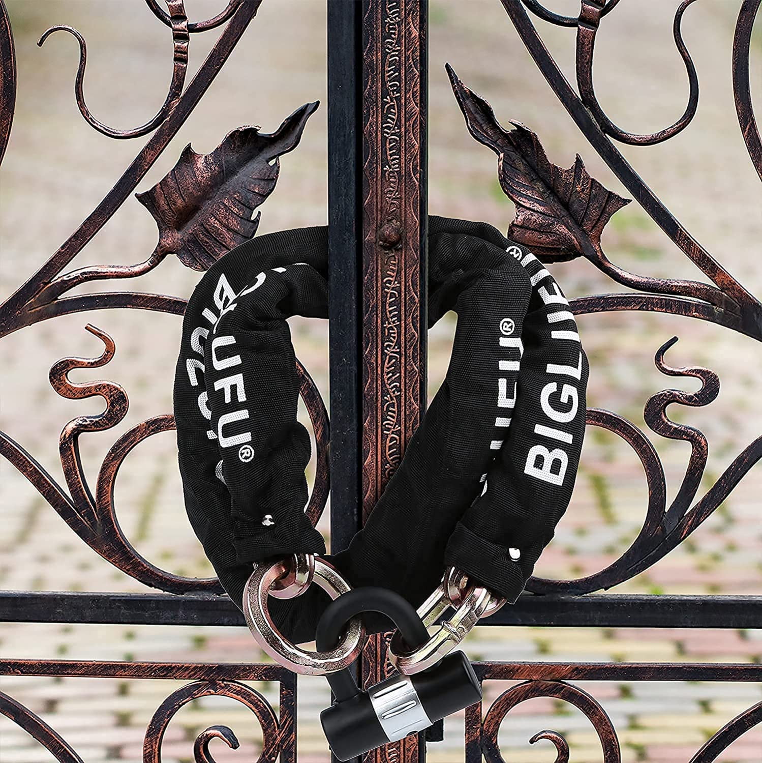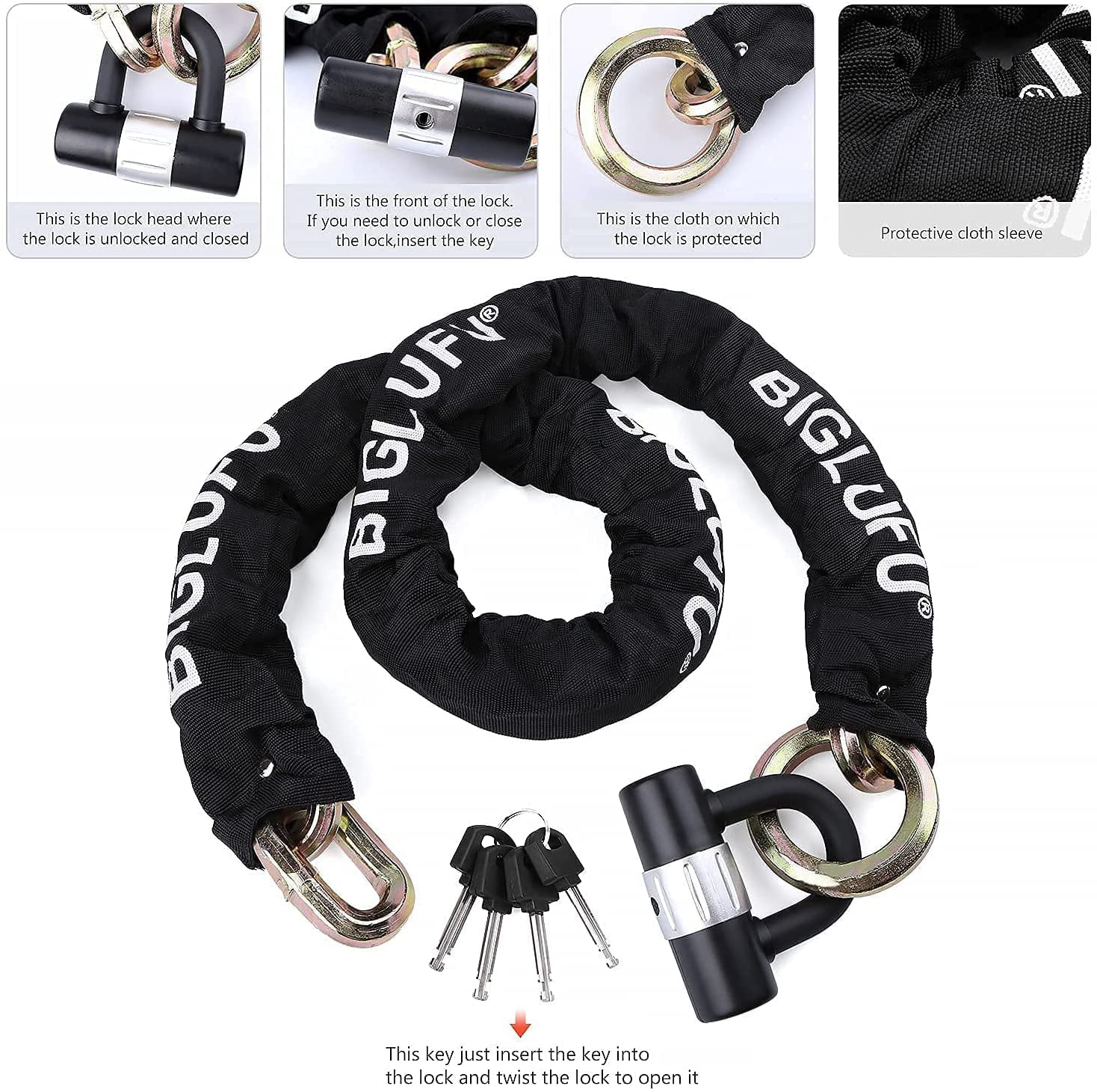 BIGLUFU Motorcycle Chain Locks Heavy Duty 5ft Long, Cut Proof 0.6 inch Thick Square Chains with 4 Keys U Lock, for Motorcycles , Bike, Generator, Gates