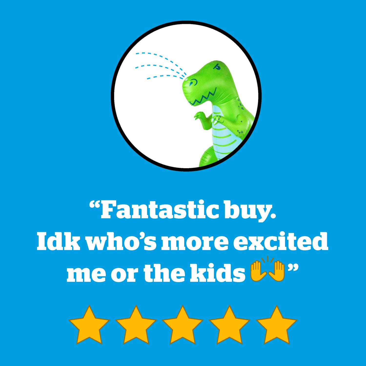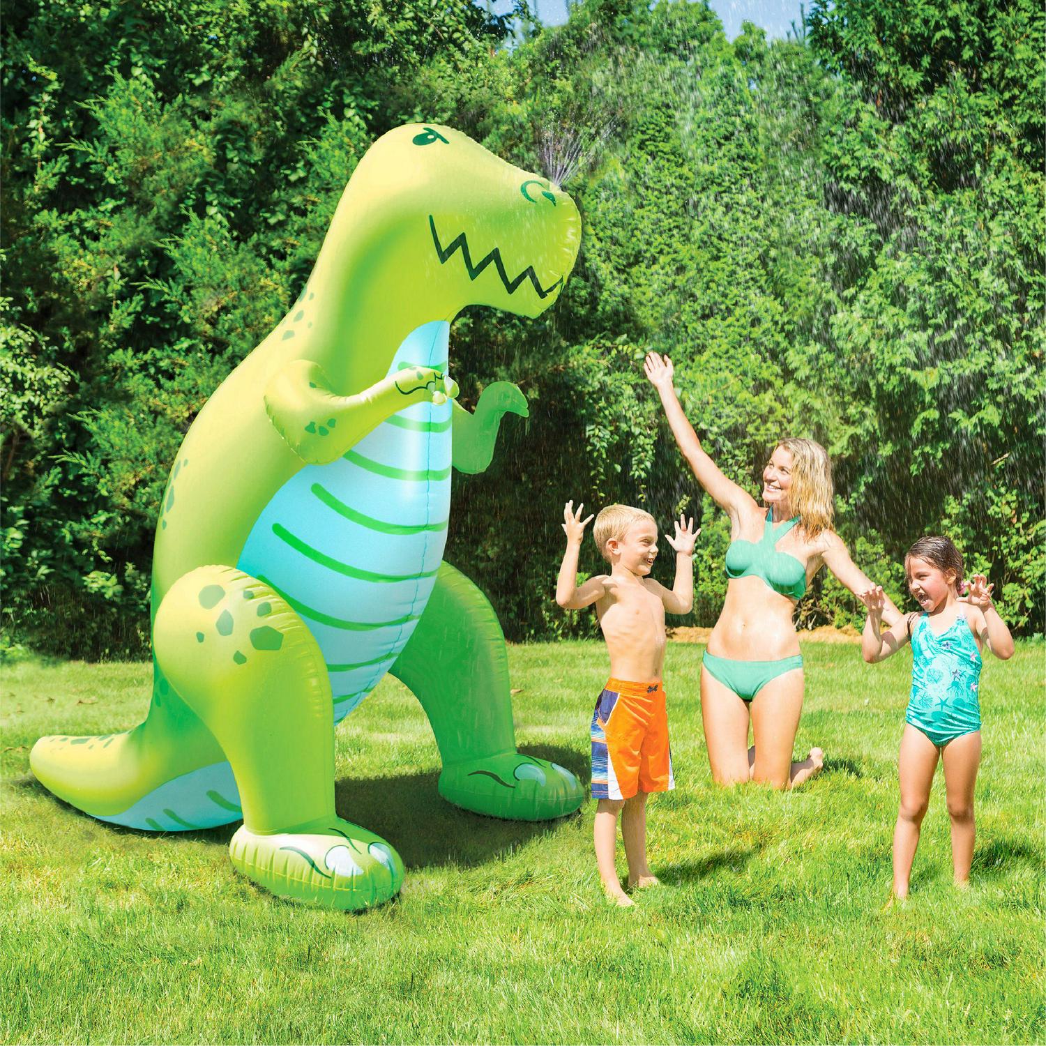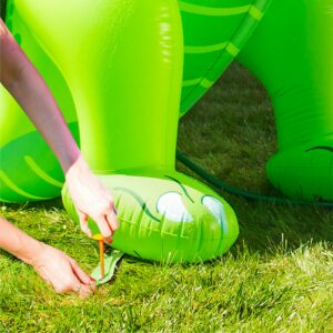BIG FUN: Huge inflatablegreen dinosaur yard sprinkler stands over 6 feet tall, STAY COOL: A fun and safe way for the whole family to cool off in summer in your backyard, CONVIENENT: Easy set up! Connects to all regular sized garden hoses, SAFETY TESTED: Made of PVC safe for the whole family, ORIGINAL: Sold by BigMouth Incthe leading name in inflatable summer fun toys. Guaranteed to bring big fun to your next outdoor party.