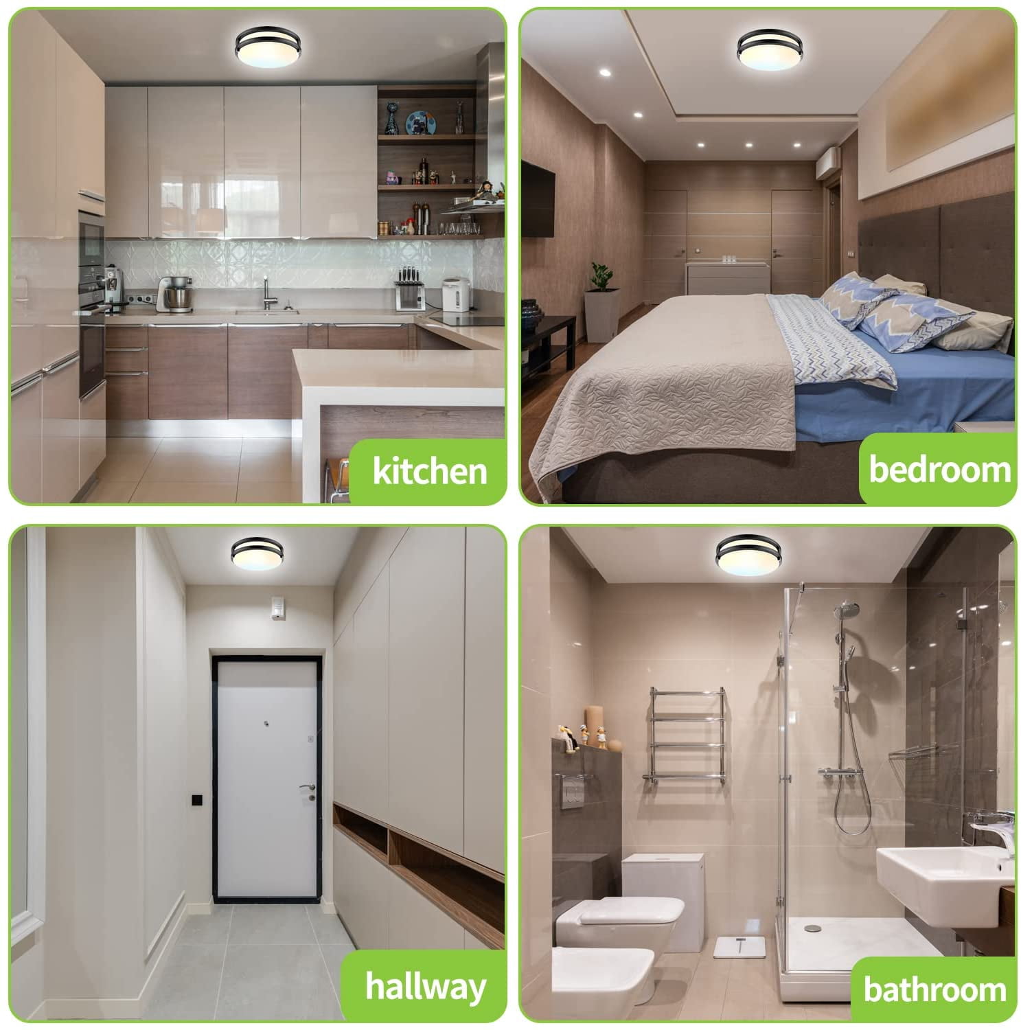 This led flush mount ceiling light has a simple and modern design, classic and versatile black color, creating a fashion and cozy atmosphere for you and your family. These light fixtures has 3 color changing temperature and 5-100% dimmable function which you can feel free to choose the lighting you like. The ceiling light has 50,000 hours life span, 24W energy-efficient LED lights to replace 250W incandescent light, less power consumption but higher brightness output saves 86% electric bill for you. These 10 inch ceiling light fixtures are perfect for kitchens, hallways, bedrooms, bathrooms, closets, stairwells, corridors, basements, offices and so on.