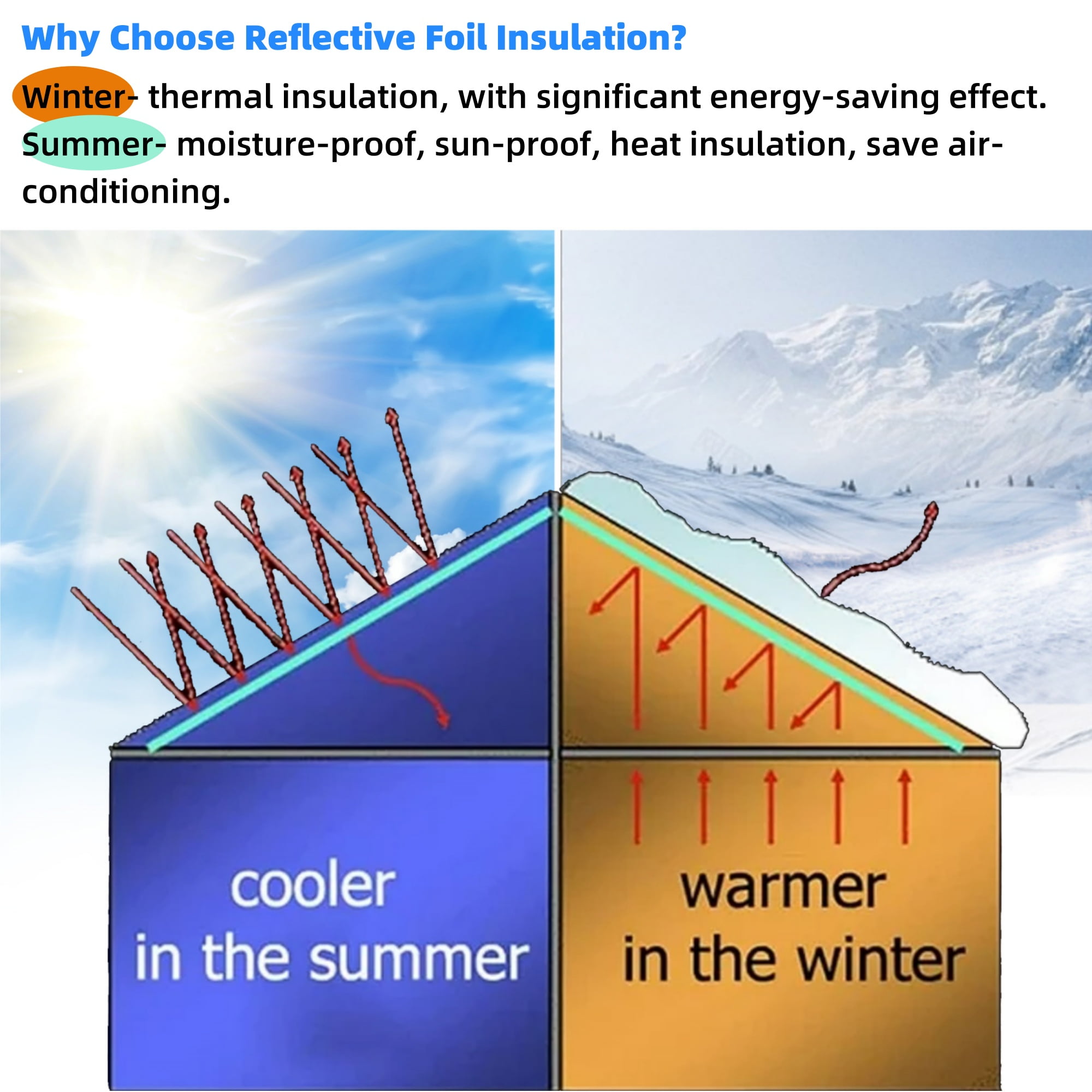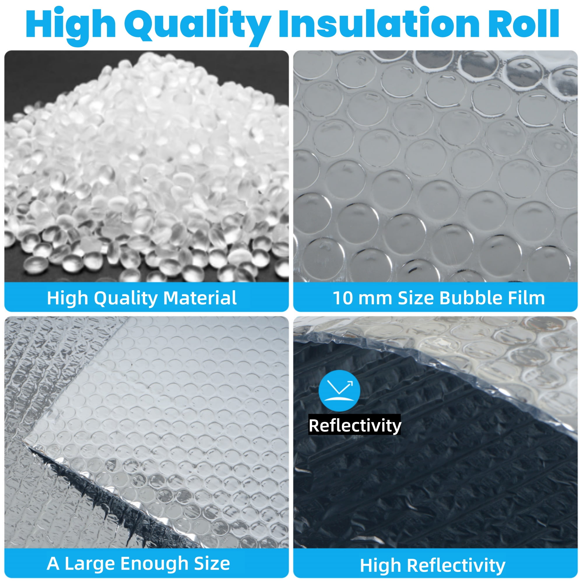 bimiti innovative Reflective Insulation Bubble Film, a cutting-edge thermal insulation material designed for ultimate efficiency. This lightweight and flexible product is easily installed, providing outstanding thermal performance. Constructed with aluminum foil and polyethylene, this odorless and non-toxic insulation offers exceptional insulation, heat reflection, and radiant barrier properties. It excels in moisture resistance, making it ideal for various building applications like roofs, walls, and floors. Enhancing wall protection and resisting rapid temperature changes are just a few benefits of this energy-saving solution. Specification: Condition: 100% Brand New Type: Double Bubble Reflective Foil Insulation Color: Silver Length: 10 m/33 ft Width: 0.6 m/24 inch Thickness: 3/16inch(5mm) Coverage area: 64.58sq. ft Function: reflect radiant, save energy, thermal insulation Package Includes: 1 x Reflective Foil Insulation