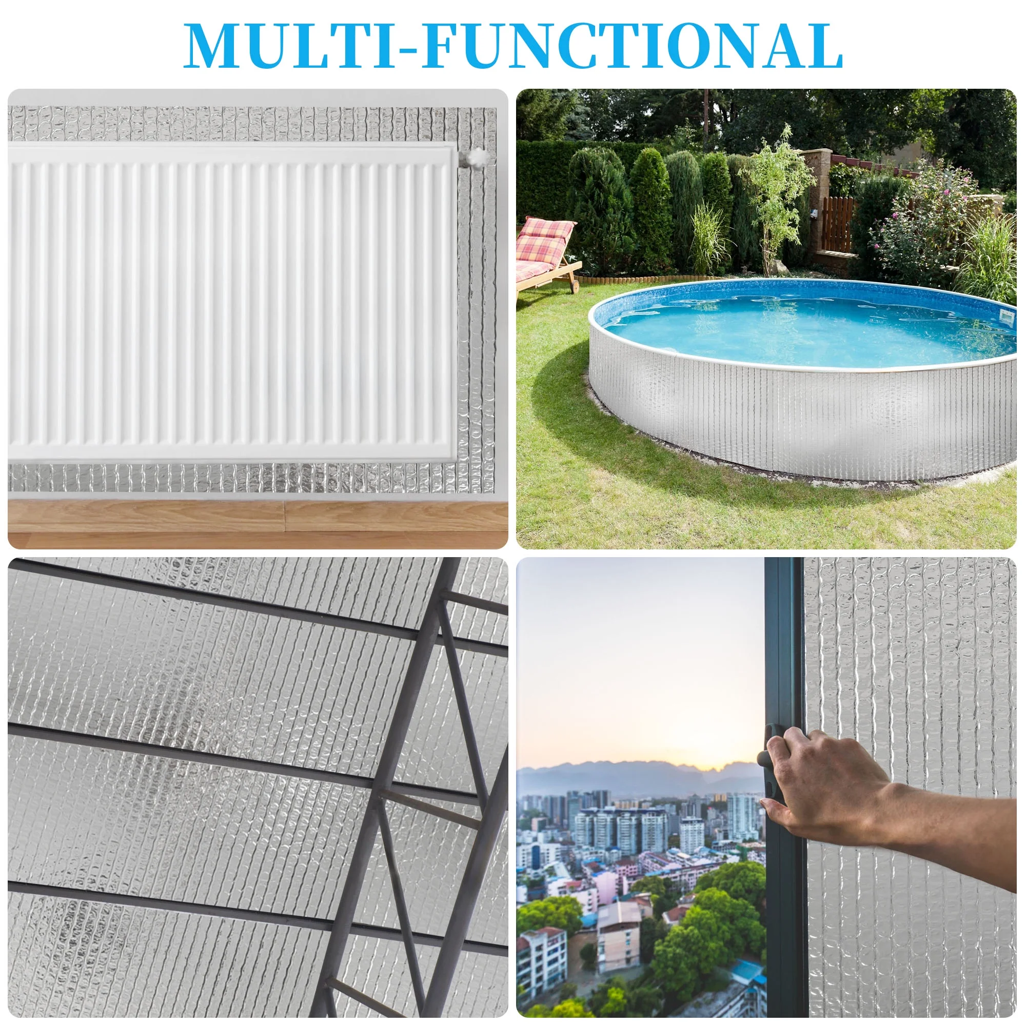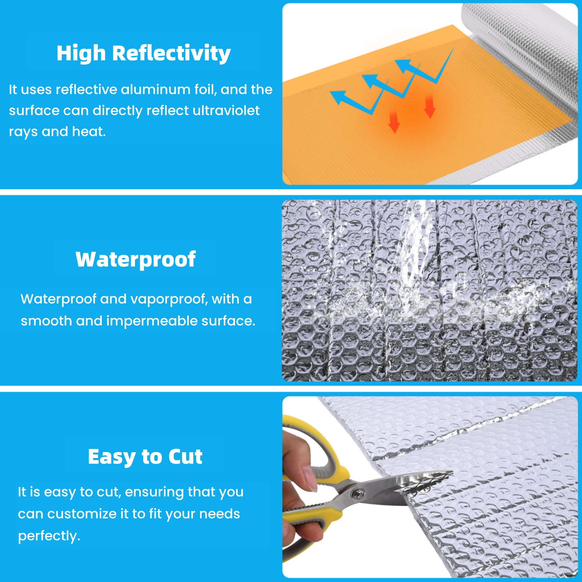 Key Features: -Non-toxic and odorless composition. -Lightweight, flexible, dust-free, flame retardant, and easy to install. -Provides excellent heat reflection, insulation, soundproofing, thermal radiation, shock resistance, moisture resistance, and -sun shading. -Suitable for roofs, walls, floors, air conditioning covers, and protective layers for pipes and ventilation ducts. -Combats temperature changes through effective insulation and moisture resistance. -Reflective aluminum foil and integrated fillings ensure optimal thermal insulation properties and durability. -Environmentally friendly, versatile, and widely applicable in construction, automotive, and aerospace industries. -Experience the superior insulation benefits of our Reflective Insulation Bubble Film. Its advanced technology enhances energy efficiency, boasting environmental friendliness and ease of installation.