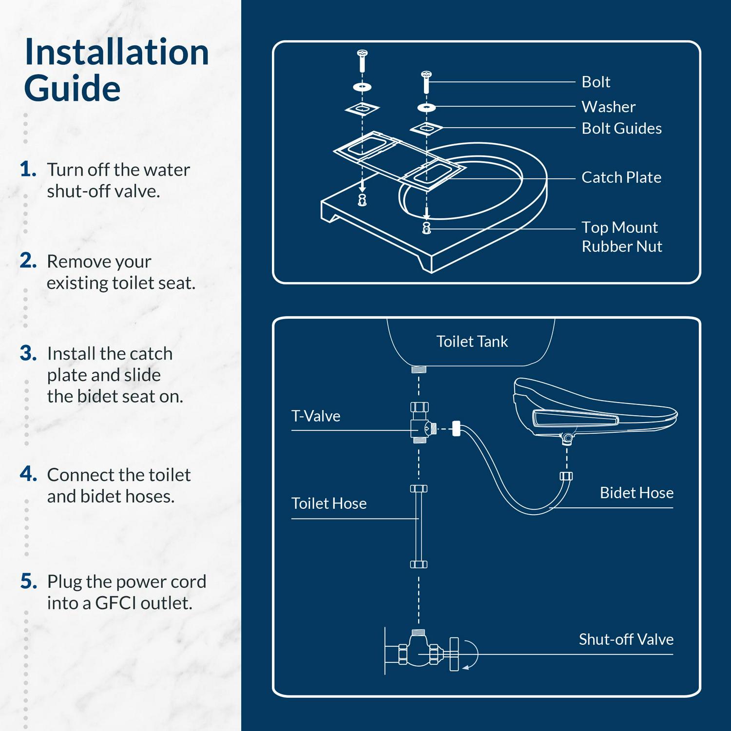 – Includes warm water, heated seat, and built-in night light.
