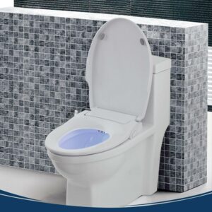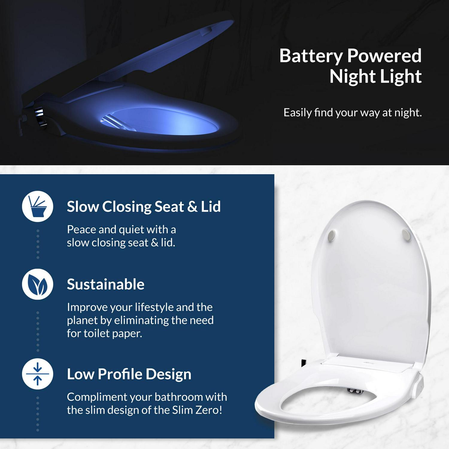 Slim Zero – Non Electric Bidet Toilet Seat for Elongated Toilet, Dual Nozzle, Nightlight, Unified Brass Valve, Inlet and T-Valve – Easy to use Chrome Plated Side Lever DIY Installation