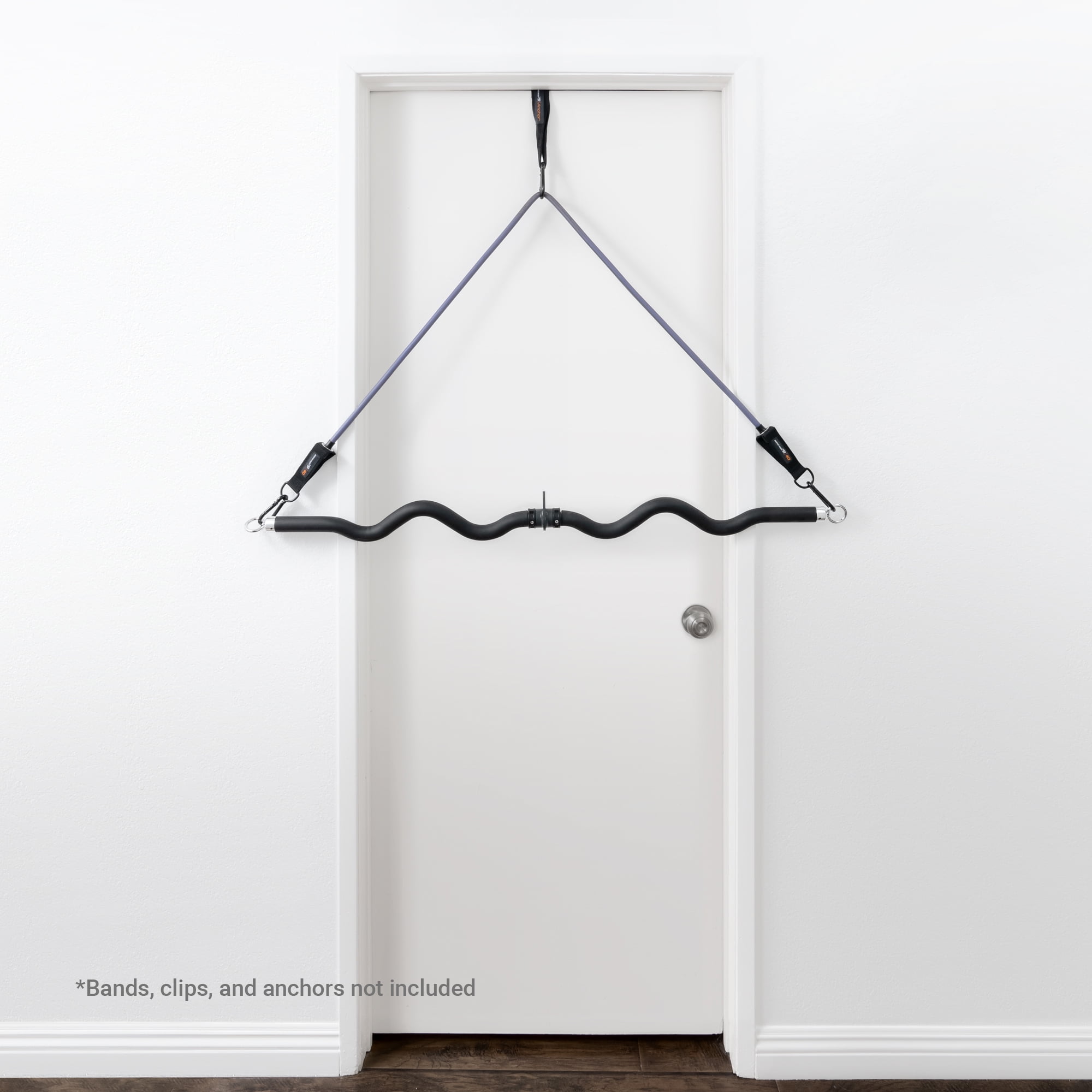 The Bionic Body Deluxe Exercise Bar BBEB-7355 provides a full body workout in your home gym, backyard, or anywhere you have a bit of space to workout. Perform curls, seated rows, and much more with the Deluxe exercise bar. Simply add resistance tubes (sold separately) to the bar and you will have access to a wide variety of workout options. This durable exercise bar is made with sturdy steel covered with rubber to ensure a solid grip. At 47” long, the bar is easy to store when not in use and easy to transport as needed. If you don’t have space for bulkier equipment, the Bionic Body Deluxe Exercise Bar can still deliver a full body workout. The connection points on the Bionic Body Deluxe exercise bar have swivels. The swivels ensure you are getting tension at the correct angle of your workout. In addition, the bar’s ergonomic curvy shape puts less stress on your elbows, wrists, and forearms during lifts.