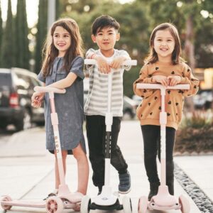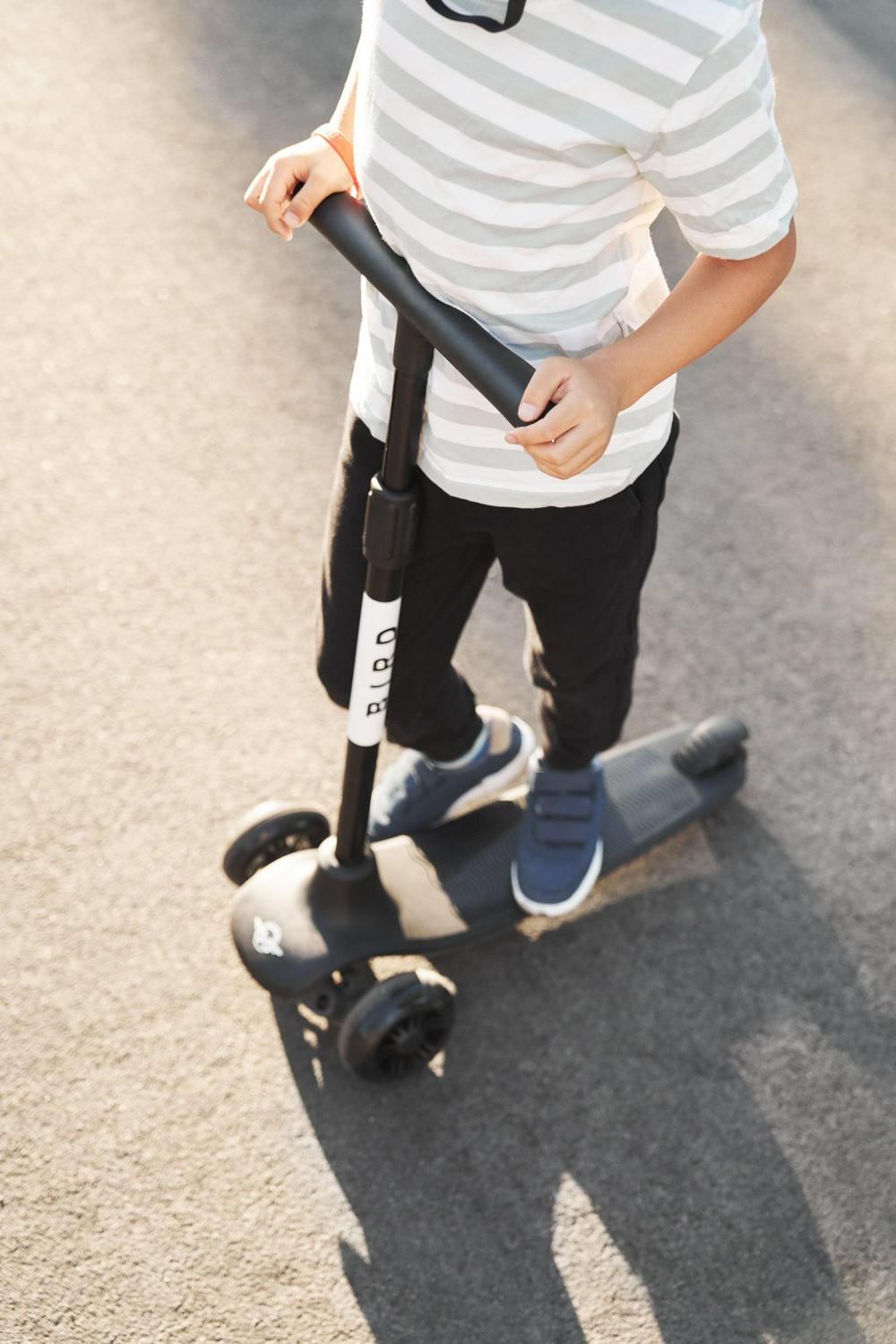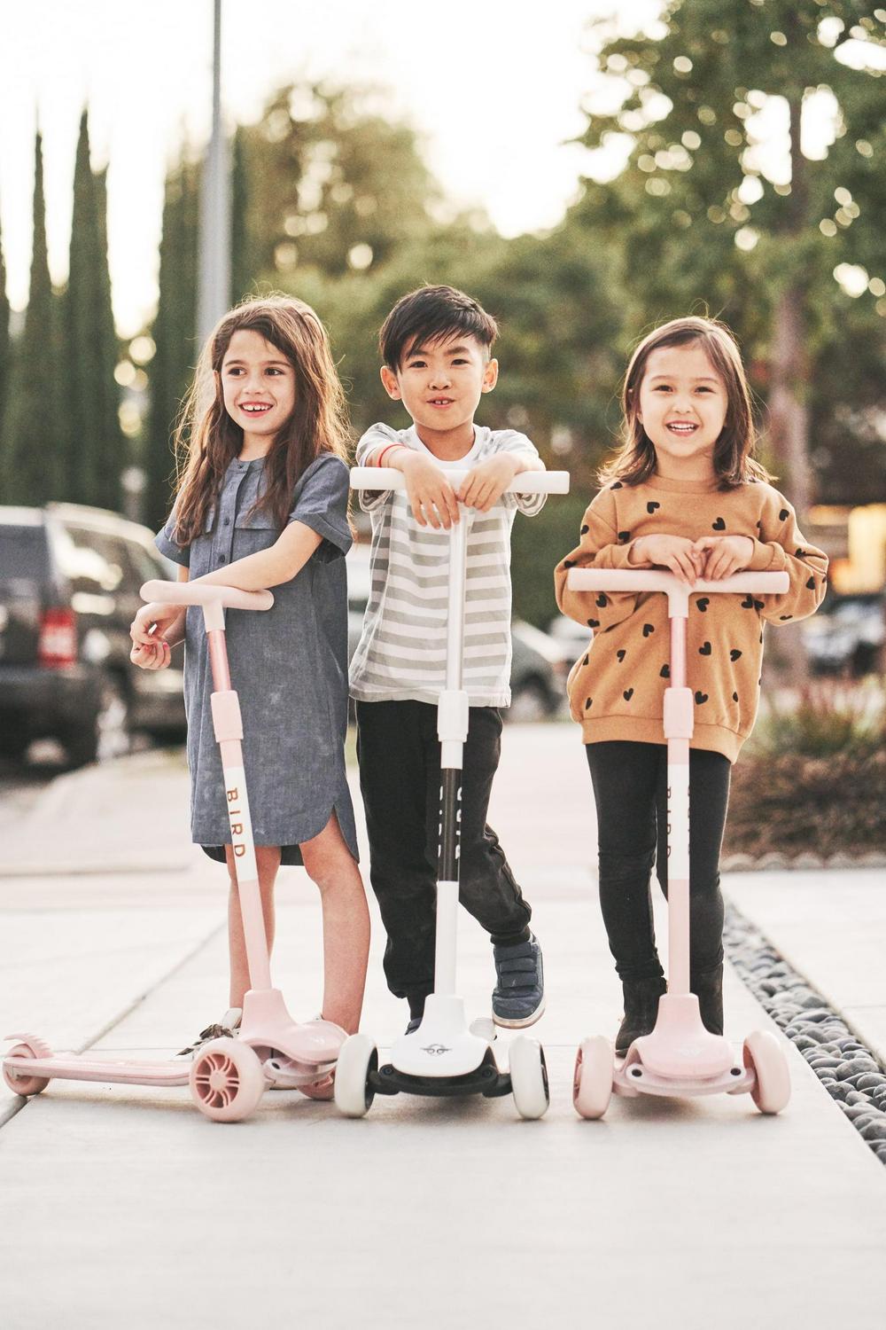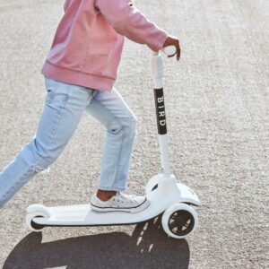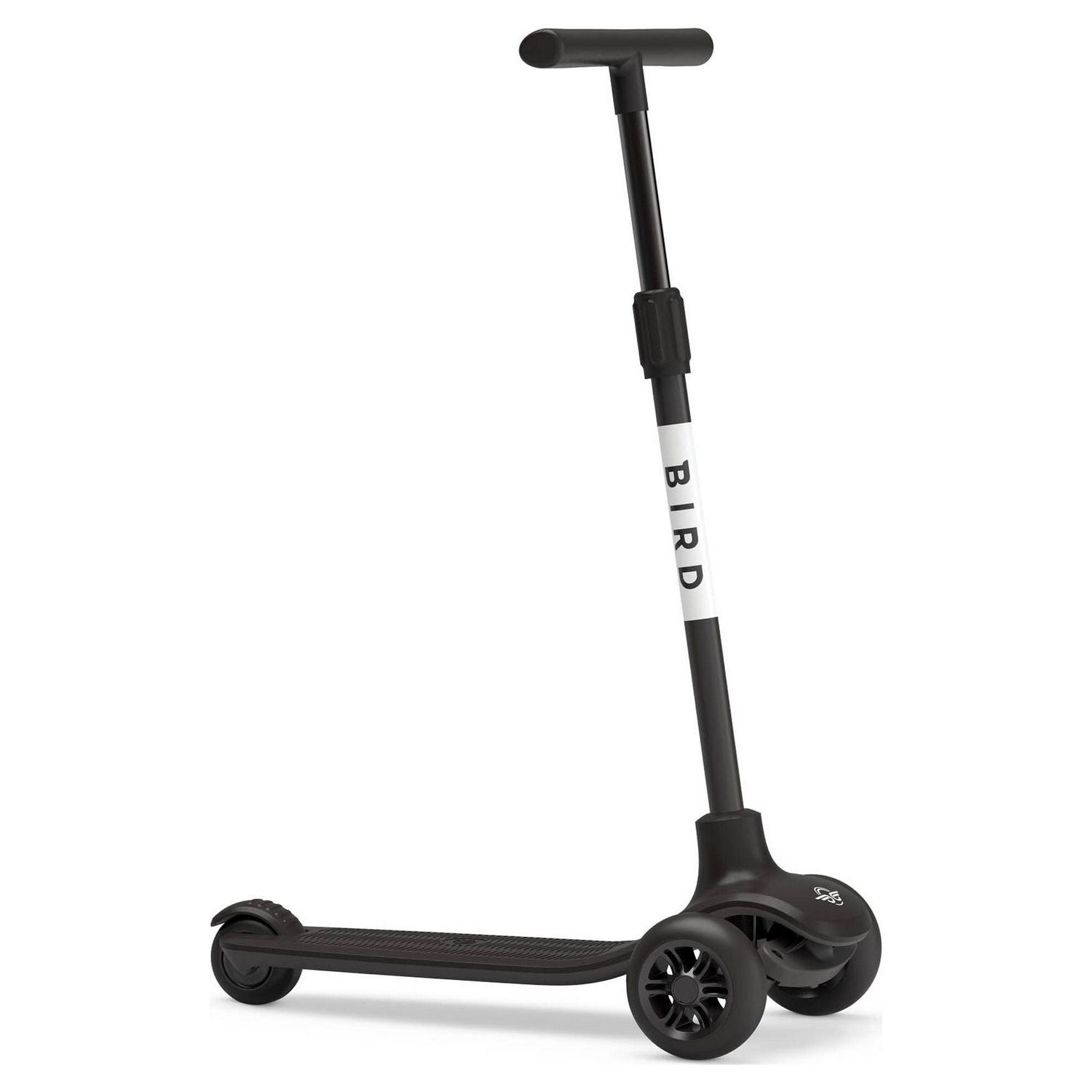 Bird Birdie 3-Wheeled Kick Scooter for Kids, Adjustable Height Handle, Lean to Steer, Back Stomp Brake,Black